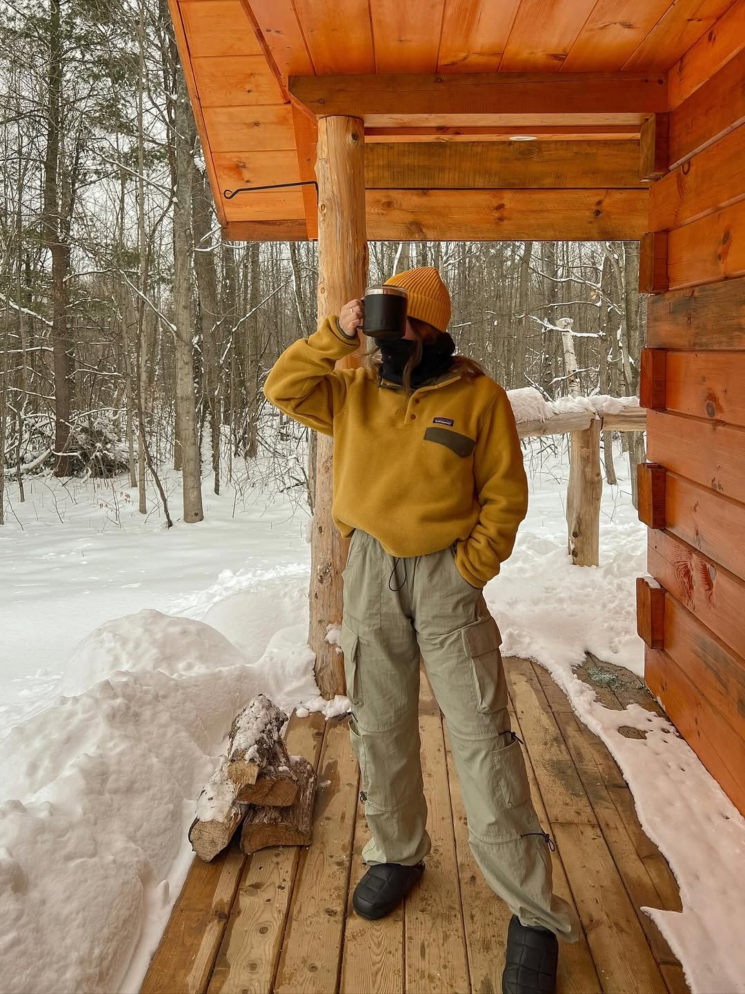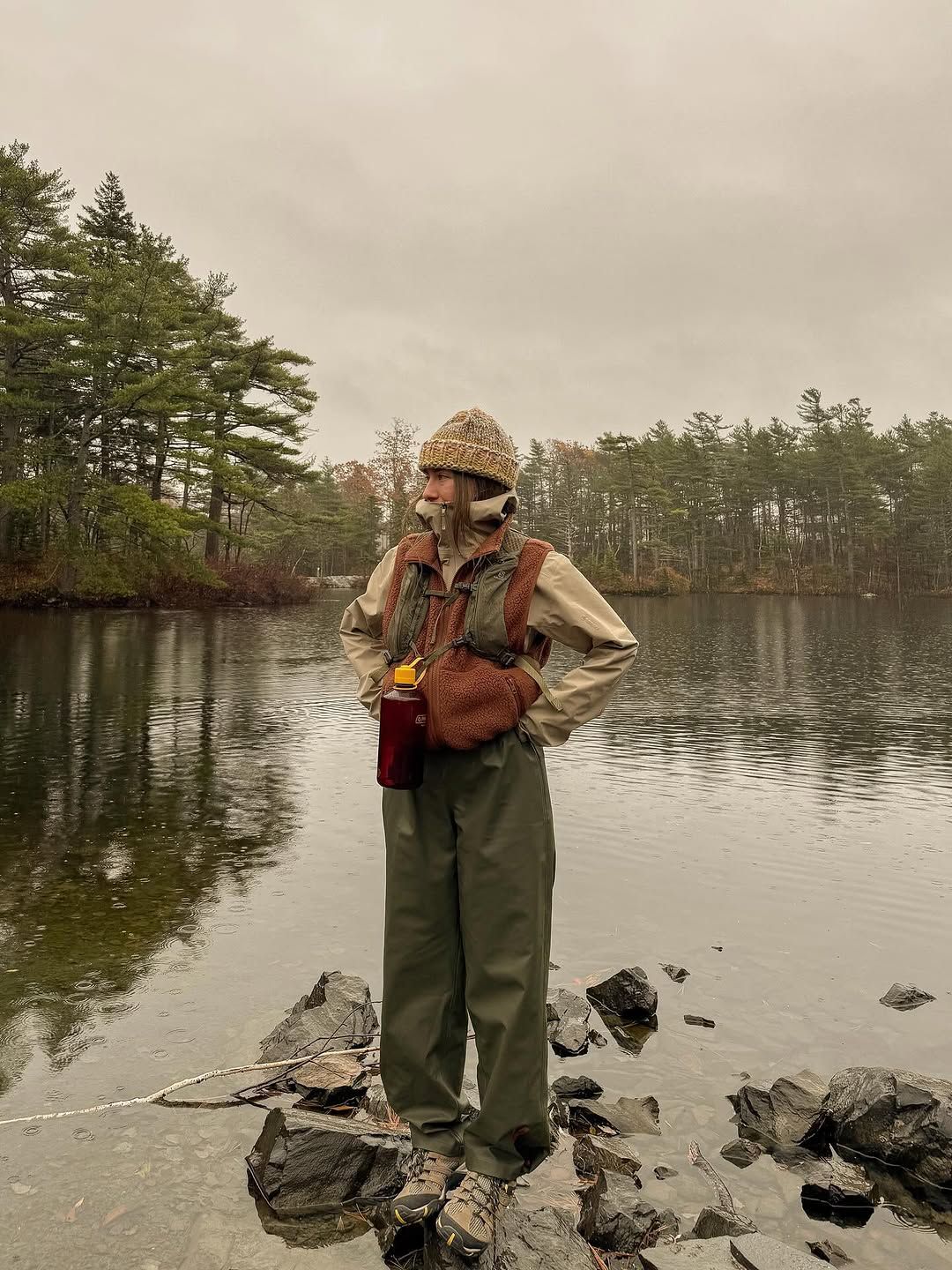 하이킹, 차박, 낚시, 산장 라이프를 고루 즐기는 일상을 공유하는 조디 로비쇼의 인스타그램은 날 것의 자연에 대한 로망을 대리 만족시켜주는 피드로 가득하다. 흥미로운 것은 제대로 씻고 꾸미기 힘든 환경에서도 늘 따뜻하면서도 감각적인 스타일을 보여주는 그녀의 아웃도어 룩들. 다채로우면서도 안정감 있는 스타일을 선보이는 그녀의 아웃도어 룩의 핵심은 ‘어스 톤’이다. 얼음이 얼기 시작한 호숫가나 갈색으로 변해버린 풀로 가득한 들판 위에 서 있는 모습조차 근사한 이미지로 탈바꿈시키는 비결은 자연과 맞춘 듯한 카키, 아이보리, 머스타드, 브라운 중심의 컬러로 선정된 아이템 덕분. 그야말로 ‘에포트리스 스타일’의 아웃도어 버전이다.