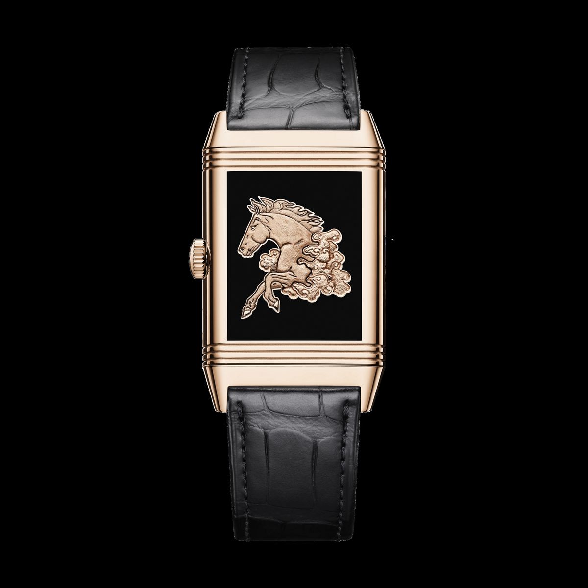 예거 르쿨트르의 아이콘, 리베르소 또한 2026년을 기념한다. 케이스백을 회전시키면 만날 수 있는 말의 강렬한 자태! 블랙 그랑 푀 에나멜 위로 핸드 인그레이빙한 말이 황금빛 구름 사이에서 강렬한 존재감을 드러낸다. 약 80시간에 걸친 모델링 인그레이빙과 예측하기 까다로운 그랑 푀 에나멜 공정이 더해져, 절제된 리베르소의 미학 속에 장인 예술의 깊이를 담아냈다.