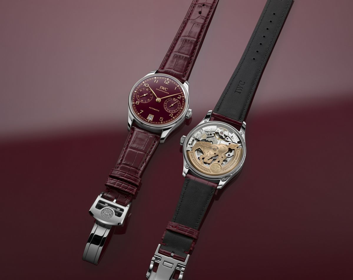 2026년, 붉은 말의 해답게 IWC에서는 강렬한 버건디 컬러의 타임 피스를 선보이며 새해를 기념한다. 케이스 백을 통해 감상할 수 있는 골드 로터에는 달리는 말 형상이 새겨져 있어 붉은 말의 역동적인 에너지를 표현했다. 다이얼 레이아웃 또한 특별하다. 3시 방향에는 파워 리저브 디스플레이를, 9시 방향에는 스몰 세컨즈를 배치해 2000년대 초 출시된 최초의 포르투기저 오토매틱 디자인을 기념한다.