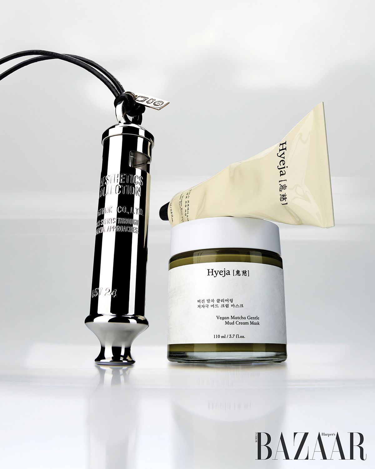 (위부터) Hyeja 쌀 발효 보습 크림 발효 쌀과 비건 프로바이오틱스를 결합한 가벼운 오일프리 제형이 피부 장벽을 강화한다. 5만9천원. 말차 머드 마스크 글로벌 인플루언서의 타임라인에서 자주 눈에 띄는 머드 마스크. 보성 녹차의 색이 다도의 고요함을 떠올리게 한다. 5만9천원.