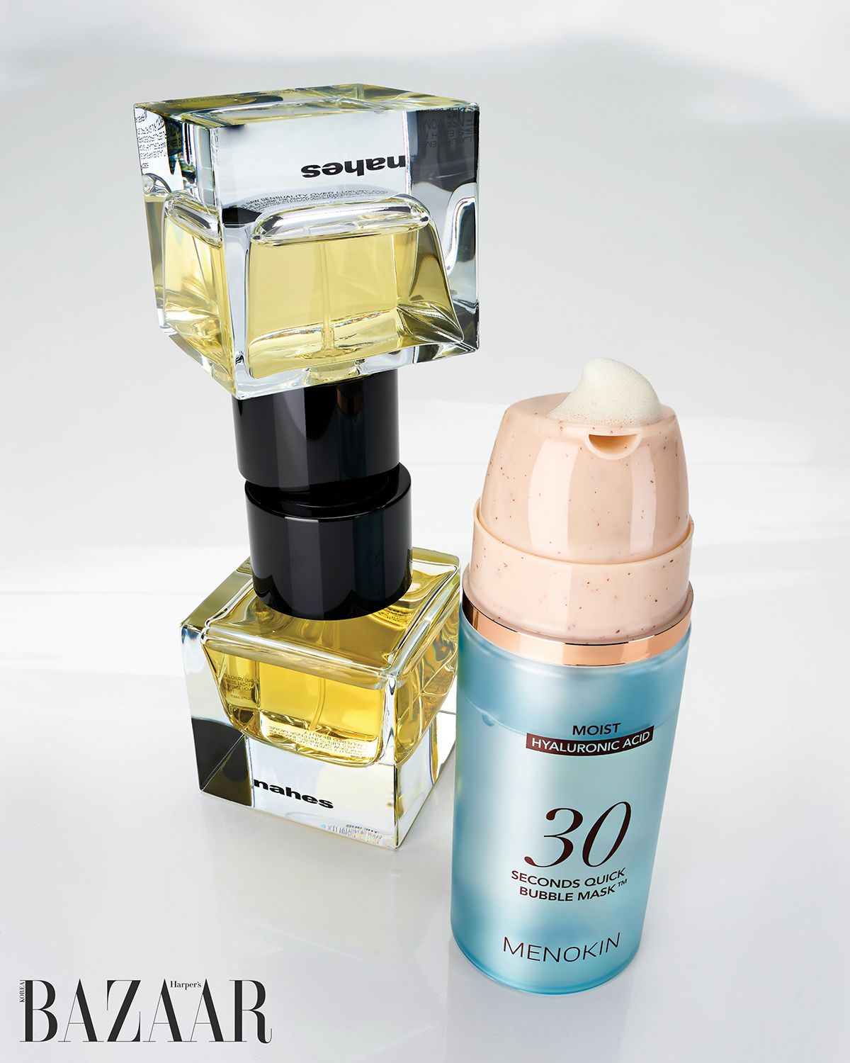 Menokin 30초 퀵 버블 마스크 모이스트 즉시 흡수되는 거품 제형 덕분에 2~3개 제품을 레이어링해 다양한 기능을 한 번에 즐길 수 있다. 2만8천5백원.