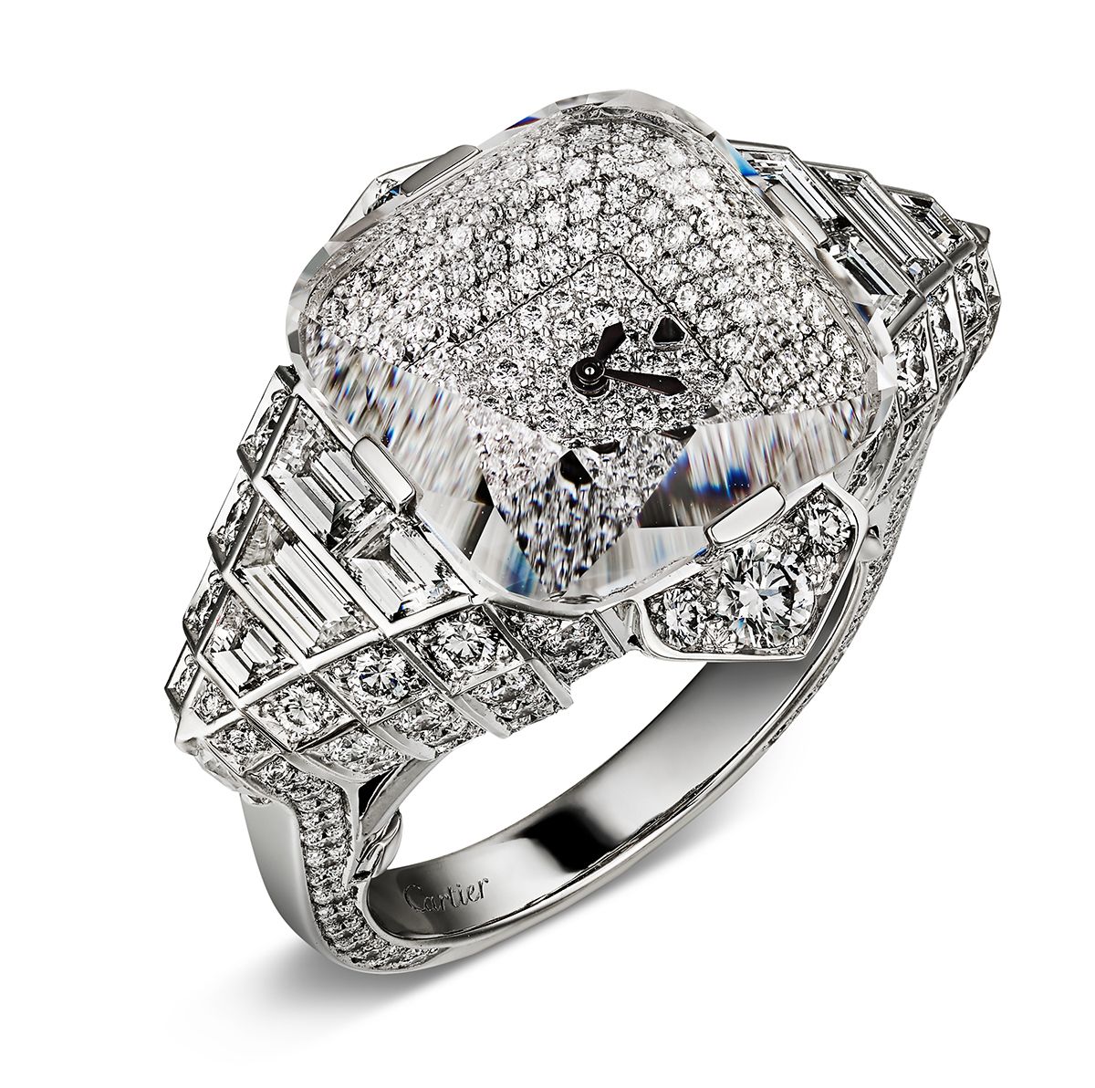 스퀘어 페이스의 반지 형태 워치는 Cartier.