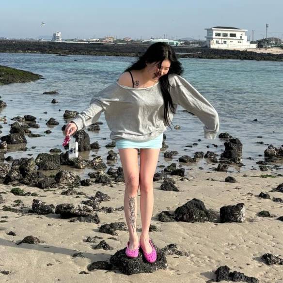 크롬하츠 홀스슈 로고 탱크를 입은 박규영(출처: @lavieenbluu)