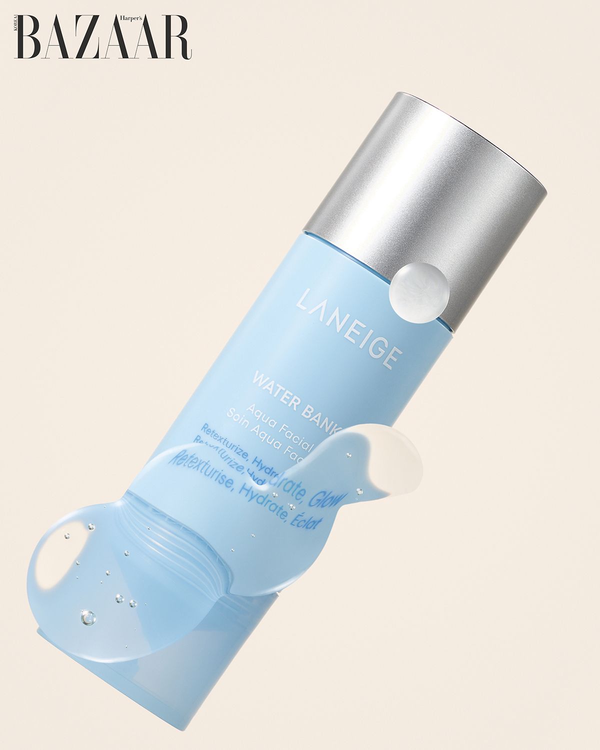 일반 히알루론산보다 강력한 수분 충전 능력을 지닌 하이브리드 성분, 징크 히알루론산이 속보습을 잡고, 물에 녹지 않는 세라마이드를 워터리 제형 안에 안정화한 ‘아쿠아 세라’ 기술로 보습 유지력을 강화했다. 그 결과 3단계 속수분 케어가 가능하다. 4만8천원.