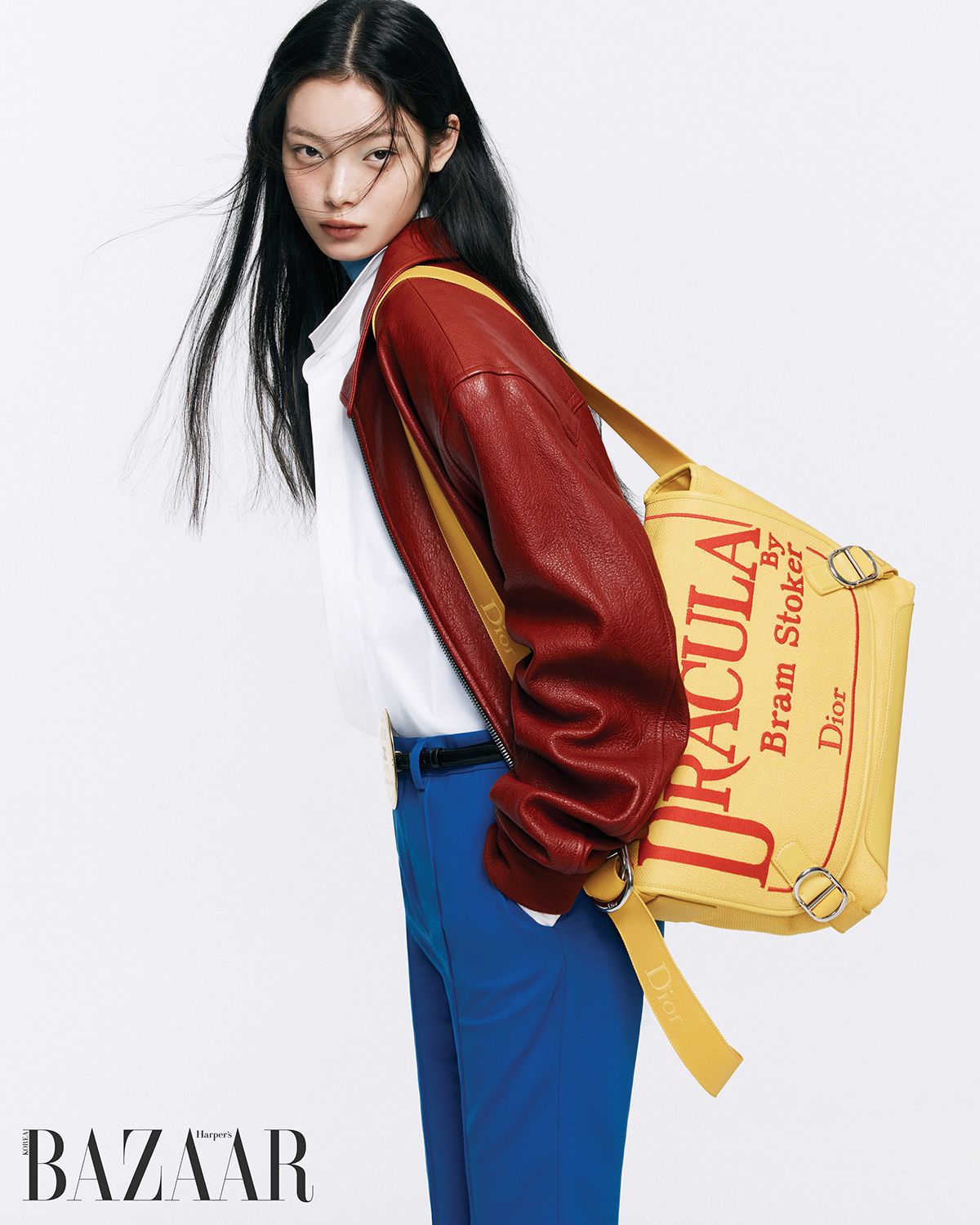 레더 재킷은 1백28만원 Recto. 셔츠는 McQueen. 이너 터틀넥 톱은 Arket. 팬츠, 벨트는 Celine. 숄더백은 Dior.