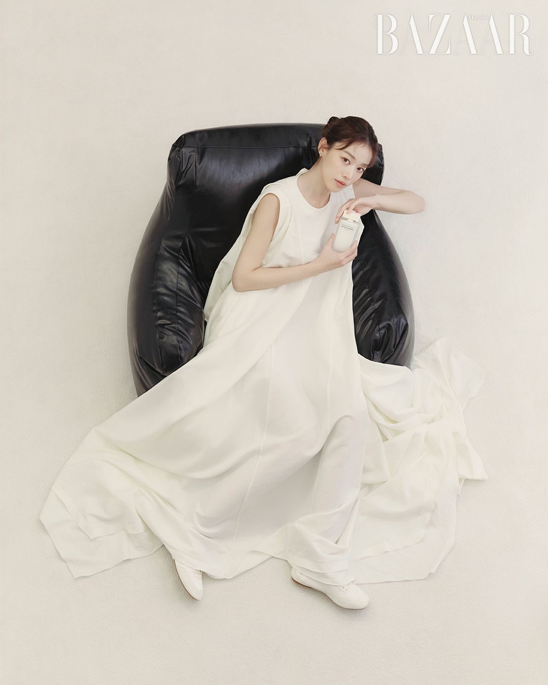 화이트 톱은 Ami. 이어링은 스타일리스트 소장품.