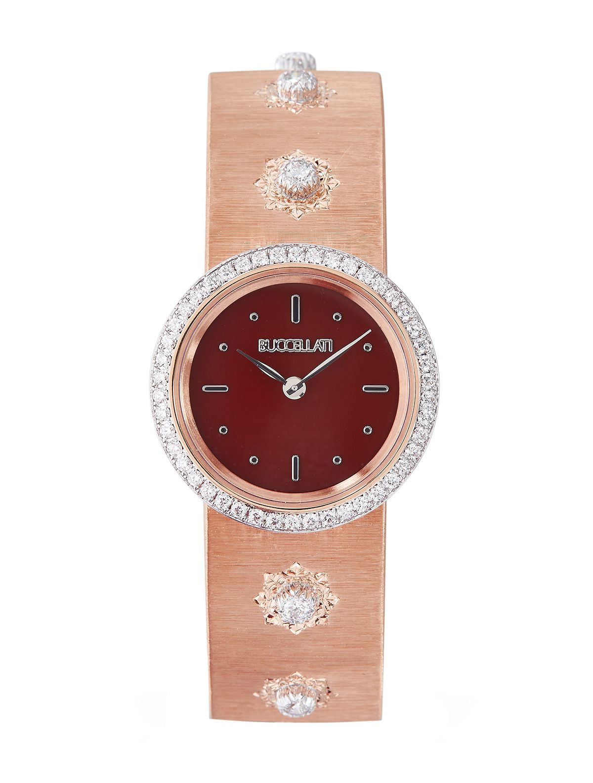 아이코닉한 리가토 인그레이빙을 적용한 뱅글 디자인 ‘마크리’ 워치는 Buccellati.