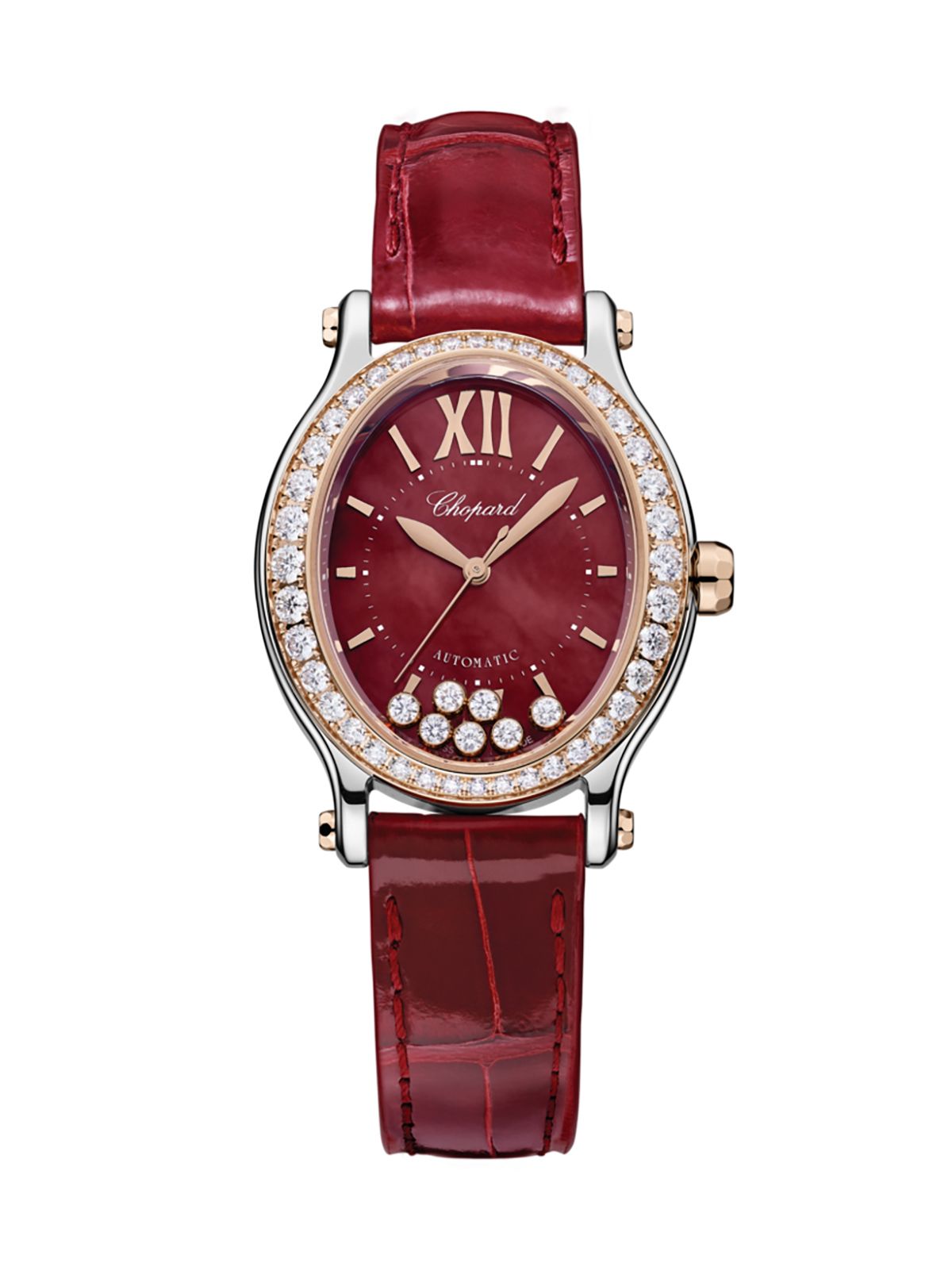 강렬한 레드 다이얼 위를 유영하는 무빙 다이아몬드 7개가 시각적 즐거움을 선사하는 ‘해피 스포츠’ 워치는 Chopard.