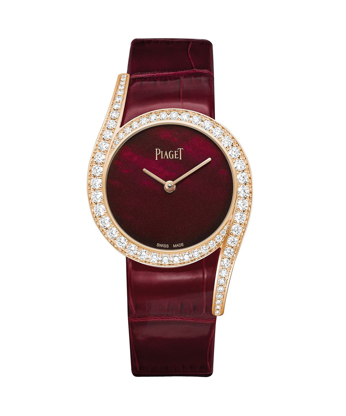 베젤과 러그를 따라 브릴리언트 컷 다이아몬드를 촘촘히 세팅한 ‘라임라이트 갈라’ 워치는 Piaget.