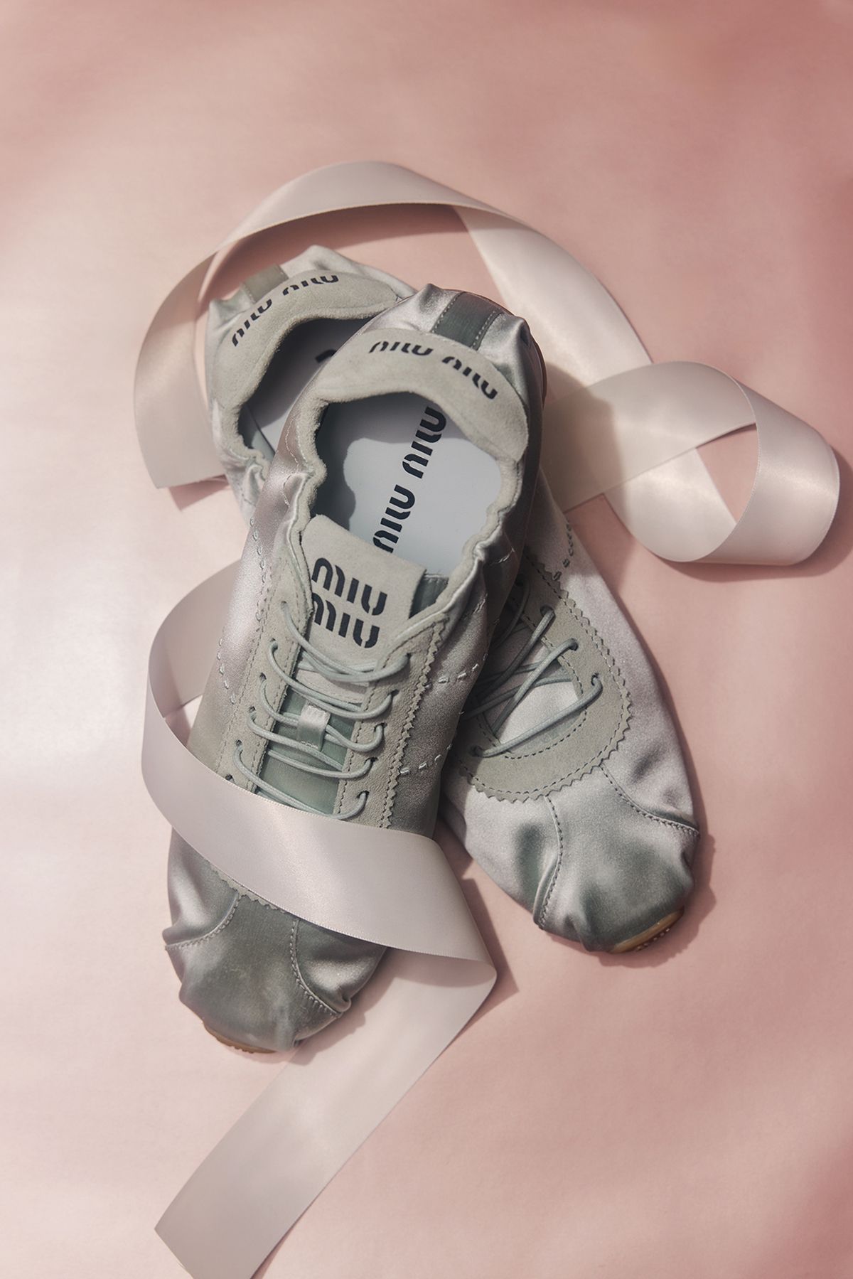 새틴 소재의 스니커즈는 1백44만원 Miu Miu.