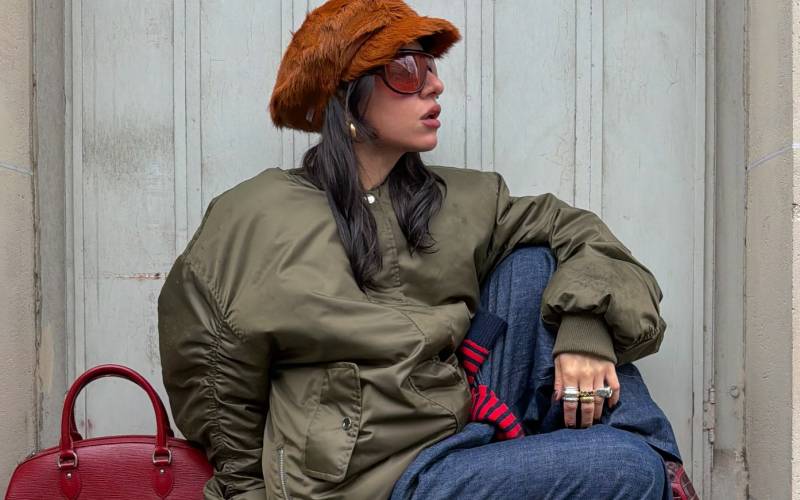 제나 오르테가는 패션 위크에 방문해 포멀한 드레스 대신 슬리브리스 형태의 나폴레옹 자켓을 선택했다. 섬세한 자수와 버튼 장식이 빈티지하면서도 우아한 분위기를 전하는 네이비 컬러 탑에 캐주얼한 데님 스커트를 매치하는 센스를 발휘했다. 클래식한 보잉 선글라스도 이날의 룩에 경쾌한 포인트가 되어준다.
