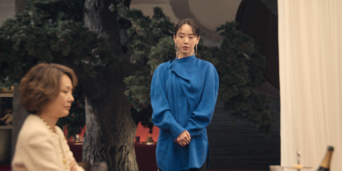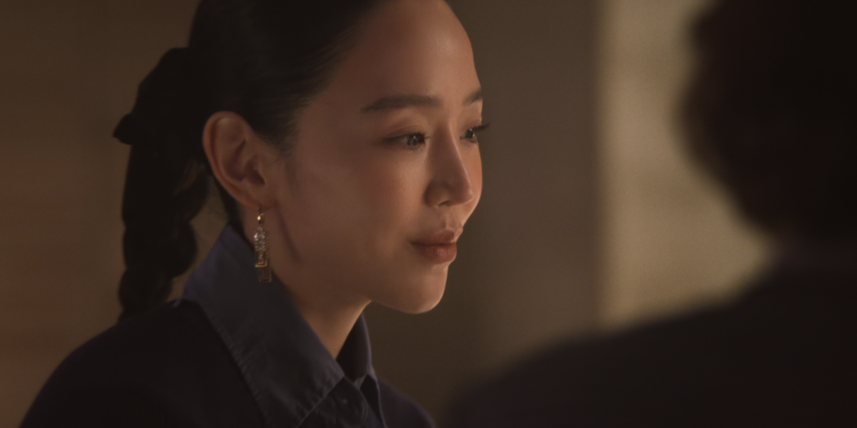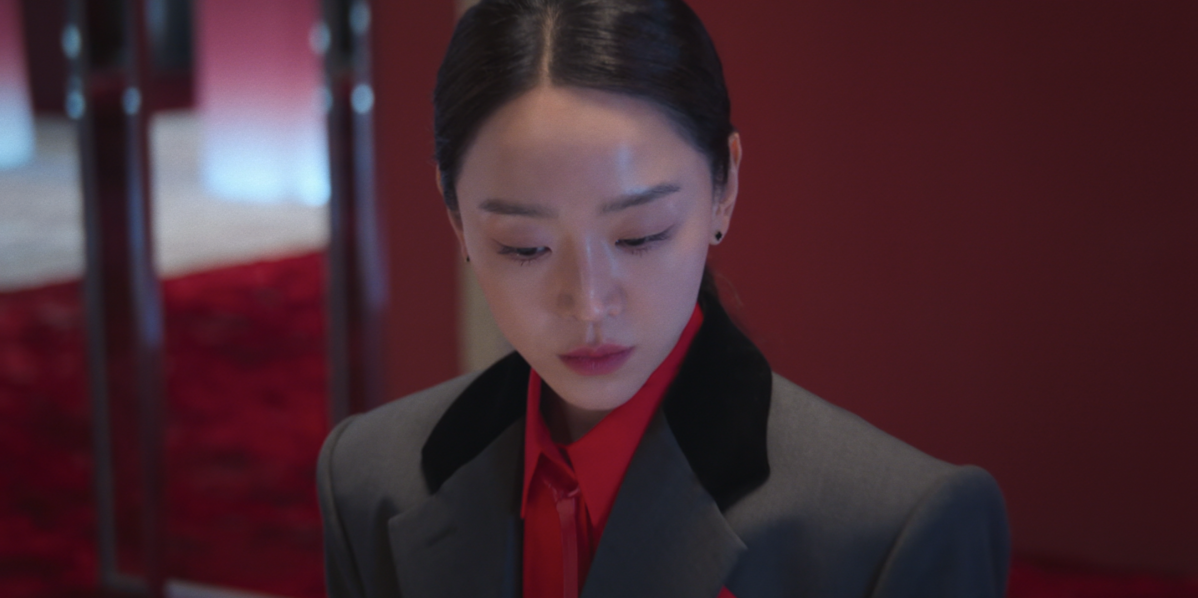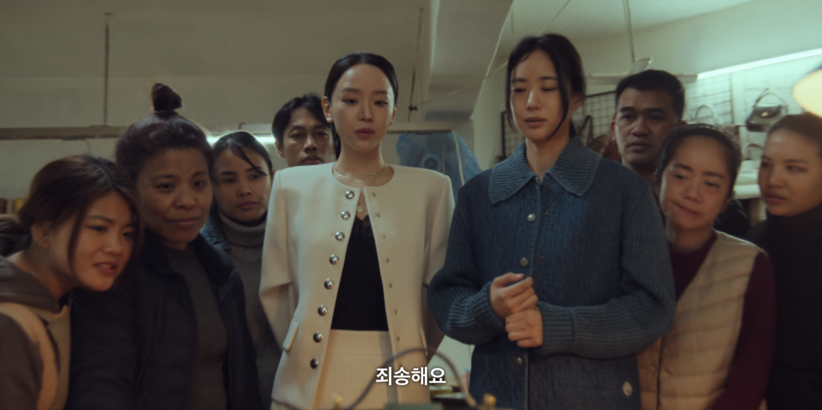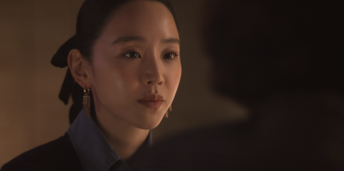 반면, 최재우 회장과의 만남에서는 헤어를 리본으로 정리해 한층 부드러운 인상을 더했다. 김홍미 본부장을 대면할 때는 심플한 블랙 이어링으로 날 선 분위기를 강조했다면, 최재우 회장을 만나는 자리에서는 스퀘어 쉐입의 화려한 이어링을 선택해 존재감을 드러냈다.