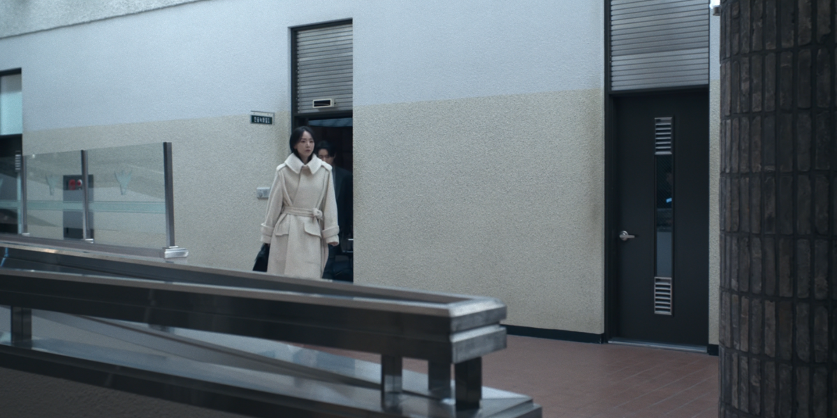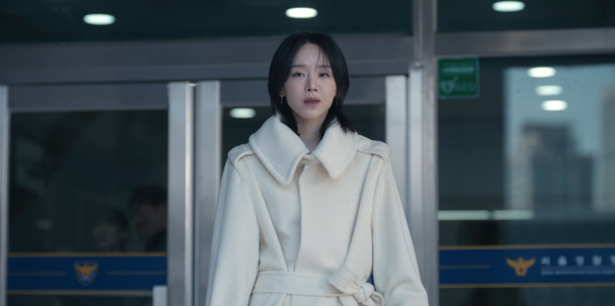 정체불명의 시신과 관련해 경찰 조사를 받는 장면에서는 화이트 컬러 코트가 시선을 끈다. 신혜선이 선택한 아이템은 빅토리아 베컴의 하이넥 벨티드 울 트렌치 코트. 허리 라인을 정리하는 벨트와 구조적인 하이넥 디자인이 지적이고 단호한 인상을 완성한다. 어깨 위로 접힌 칼라 디테일은 얼굴선을 정리하며, 침착하고 당당한 태도를 강조한다. 캐릭터의 위선을 보여주듯 깨끗한 화이트 컬러와 큼직한 디테일이 유난히 눈에 띈다.