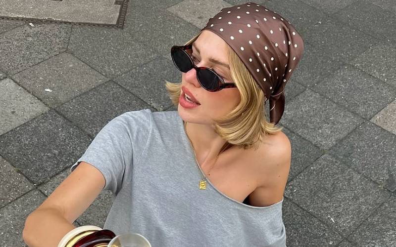 슬립 드레스는 Amiri. 선글라스는 Chanel. 커프는 Ferragamo. 스트랩 힐은 Tom Ford.