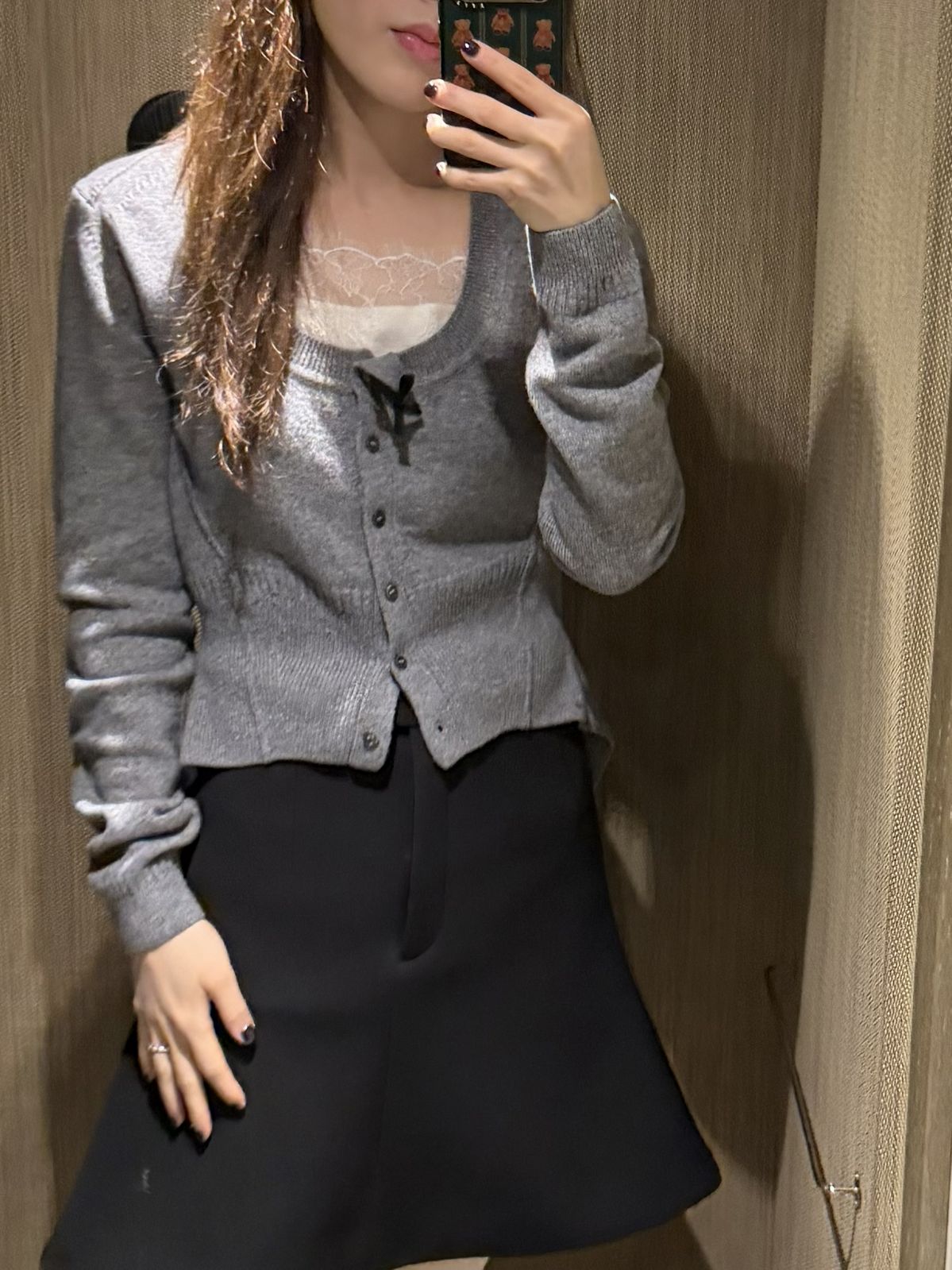 」 LOOK 3. 레이스 트리밍 카디건 + 플레어 스커트