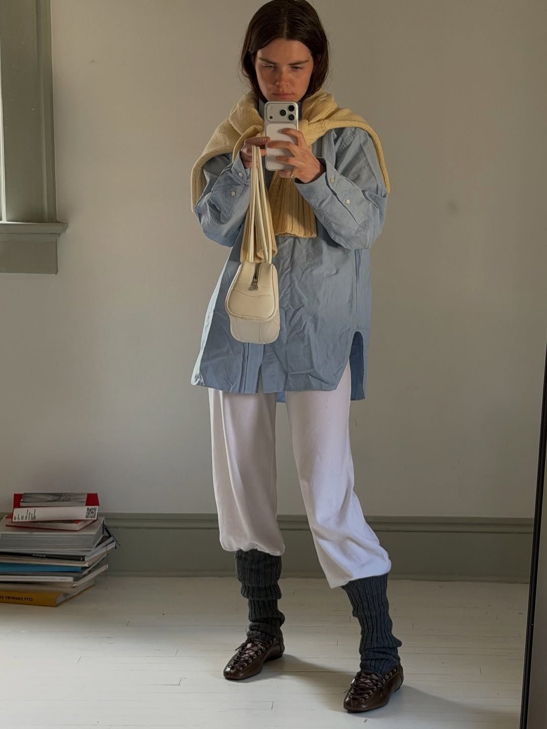 플랫 슈즈는 추리닝 바지의 캐주얼함을 중화시키는 장치다. 스포티한 실루엣에 단정한 플랫을 더하면 룩 전체가 한결 정돈된 인상을 준다. 특히 발레리나 플랫이나 메리제인 스타일은 추리닝 바지가 가진 러프함을 부드럽게 감싸준다. 여기에 발토시나 양말을 레이어드하면 룩에 깊이가 더해진다. 두툼한 양말을 플랫 슈즈 위로 살짝 보이게 연출하면 의도된 스타일링처럼 완성된다. 색은 화이트나 블랙처럼 기본에서 시작해 사랑스러운 파스텔 톤도 추천!