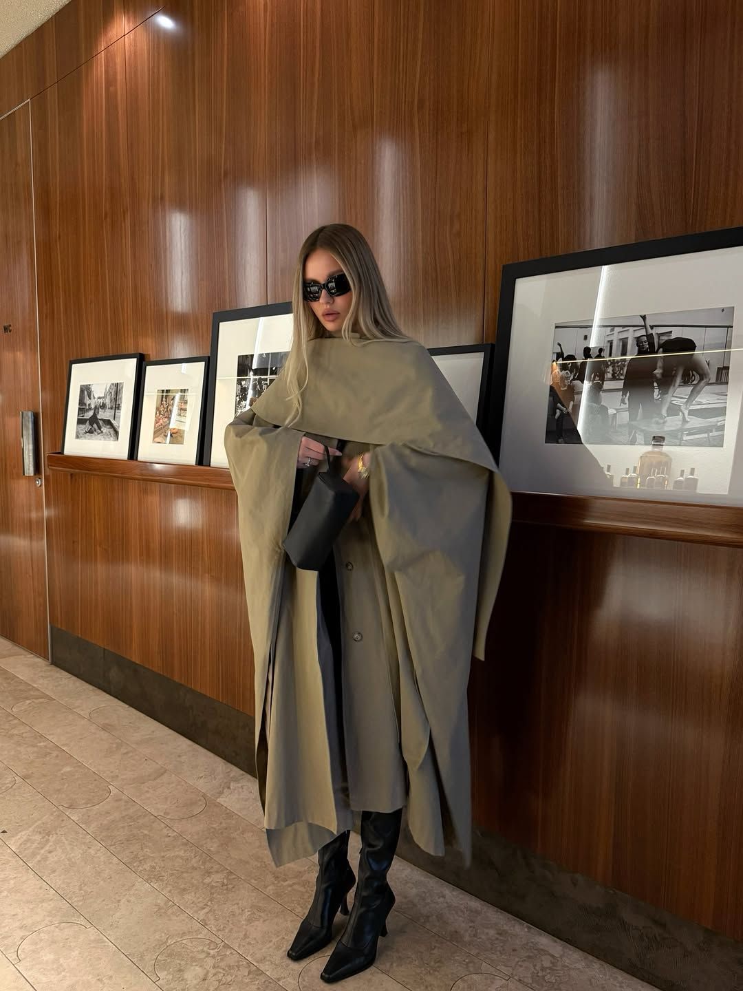 트렌치 코트 선택에 있어서도 새로운 도전을 원한다면, 트렌치 코트에 케이프 패널을 더한 하이브리드 디자인 코트를 시도해보는 것은 어떨까? 어깨를 덮는 오버레이는 상체에 볼륨을 형성하고, 맥시 기장의 바디와 대비되며 극적인 비율을 완성했다. 움직일 때마다 형태가 달라지는 구조 덕분에 단순한 아우터가 아닌 조형적인 피스로 기능한다는 점도 특징이다. 전체적으로 루즈한 오버사이즈 핏과 구조감을 정리하기 위해 슬림한 팬츠나 스커트 또는 절제된 액세서리 선택은 필수다.