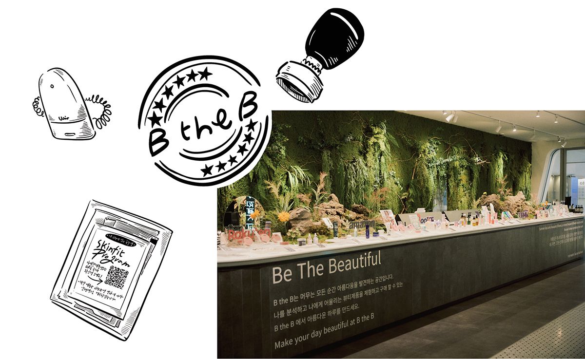 DDP 지하에 있는 비더비에서는 뷰티 테크를 통해 피부와 두피 상태를 진단 받을 수 있다. 가장 기억에 남았던 ‘스킨핏’은 얼굴을 부위별로 촬영해 유분, 탄력, 각질 상태를 분석하고 부족한 부분에 맞는 스킨 키트를 제안해준다. 평소 막연하게 느끼던 피부 고민을 데이터로 확인하니 제품을 선정하는 데도 확실히 도움이 되었다. 이외에도 이목구비와 피부 톤을 분석해 개인에게 어울리는 메이크업 차트를 만들어주거나, 염색했을 때 어울리는 컬러를 미리 시뮬레이션 해볼 수 있는 기기들도 자리한다. 진단 후에는 K-뷰티 제품을 자유롭게 테스트할 수 있다. 외국인 방문객이 많은 공간 특성을 고려해 마음에 드는 아이템은 QR 코드를 통해 아마존이나 큐텐 저팬, 쇼피 등 해외 플랫폼에서 구매할 수 있다.