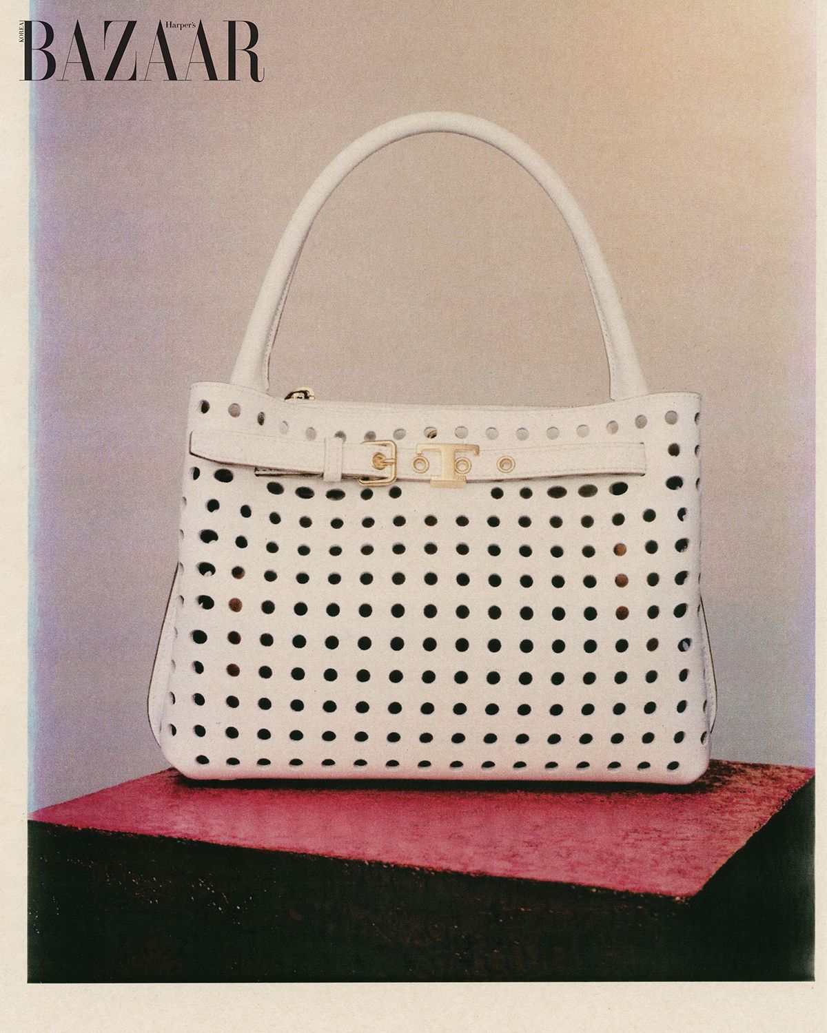 하우스의 상징적인 고미니(Gommini) 밑창 모티프의 ‘T 타임리스’ 톱 핸들 백은 3백85만원 Tod’s.