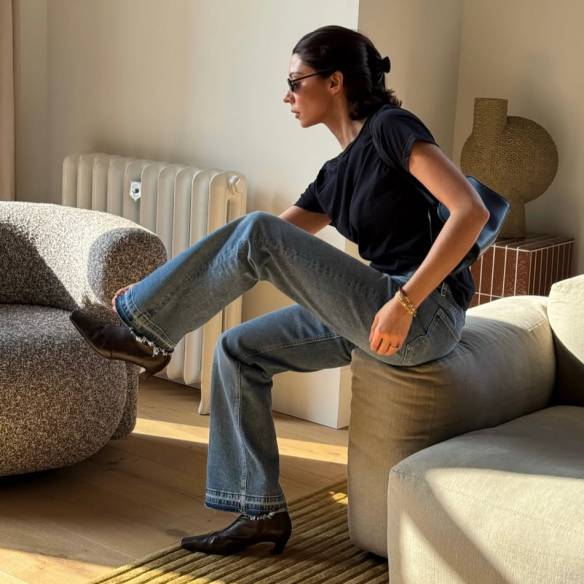 폴뉴아는 발등을 감싸는 리본 디테일로 셔링을 만들어 입체적인 표면을 완성하는 독특한 디자인으로 시선을 끈다. 유연한 양가죽이 발 볼을 넓게 감싸서 모던한 무드를 연출했다. 삭스와 함께 매치해 발등의 디테일을 강조하거나, 미니멀한 룩에 더해 질감을 드러내는 스타일링을 추천한다.