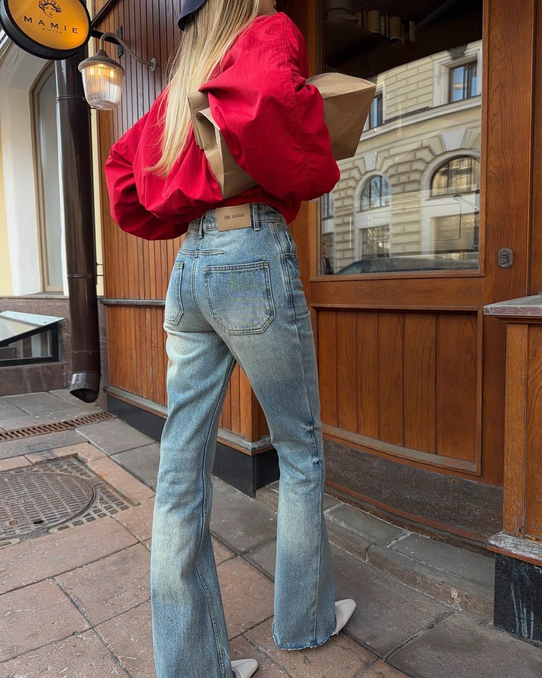 완만하게 퍼지는 부츠컷 실루엣이 자연스러운 비율 보정을 만들어내는 기본형 데님을 선택해보자. 허벅지를 과하게 조이지 않으면서도 무릎 아래에서 부드럽게 확장되어 다리 선을 길게 이어준다. 중청에 가까운 워싱은 과한 대비가 없어 데일리 아이템으로 선택하기 좋다. 골반과 허벅지에 볼륨이 있는 체형이라면 이렇게 여유 있는 부츠컷이 하체 라인을 부드럽게 정리하는 데 유리하다. 상의는 크롭 기장이나 가볍게 넣어 입는 슬림한 톱으로 허리선을 드러내고, 슈즈는 발등을 덮는 기장과 자연스럽게 이어지는 미들 힐을 선택하면 더욱 다리가 길어 보일 수 있다.