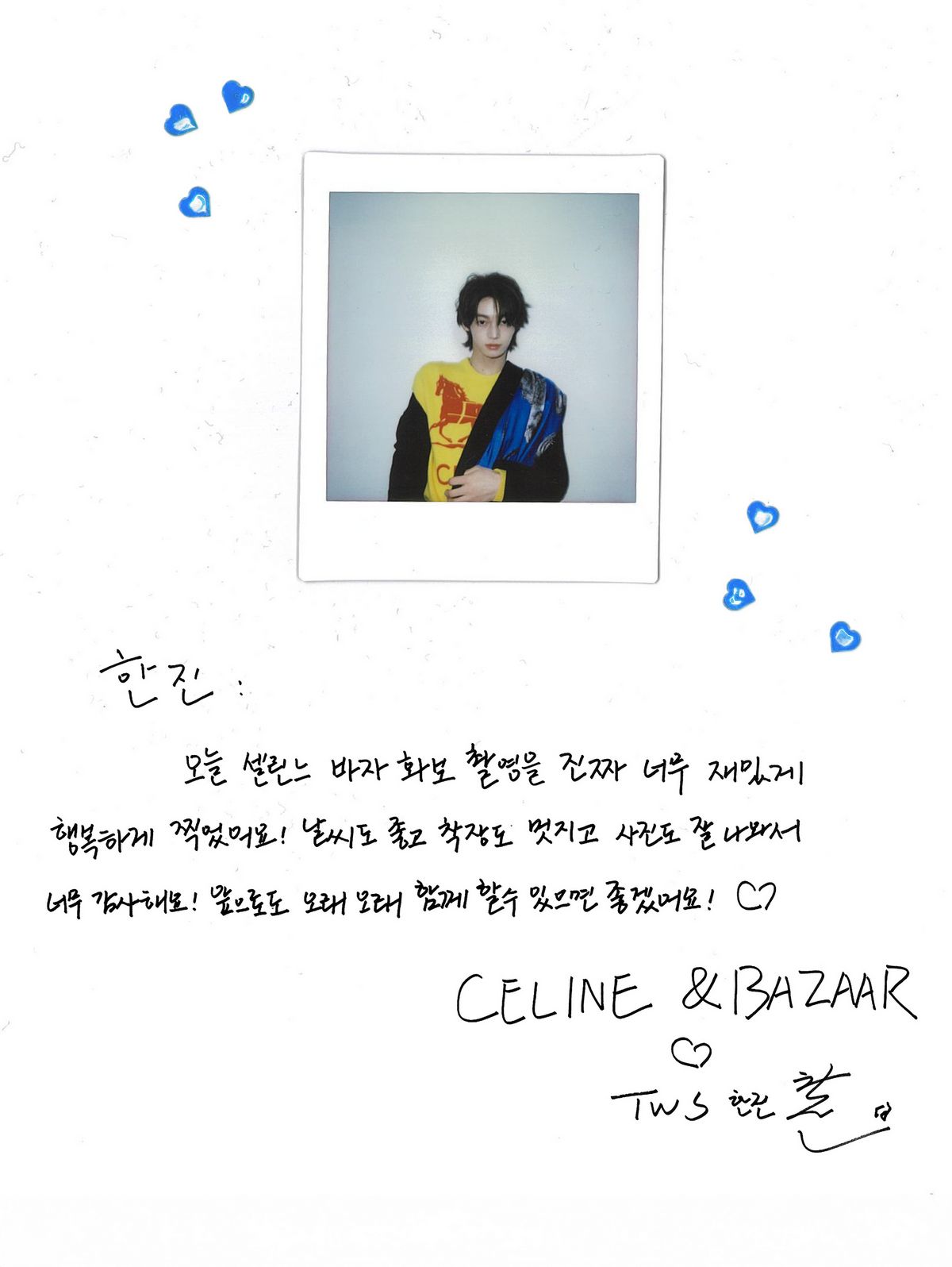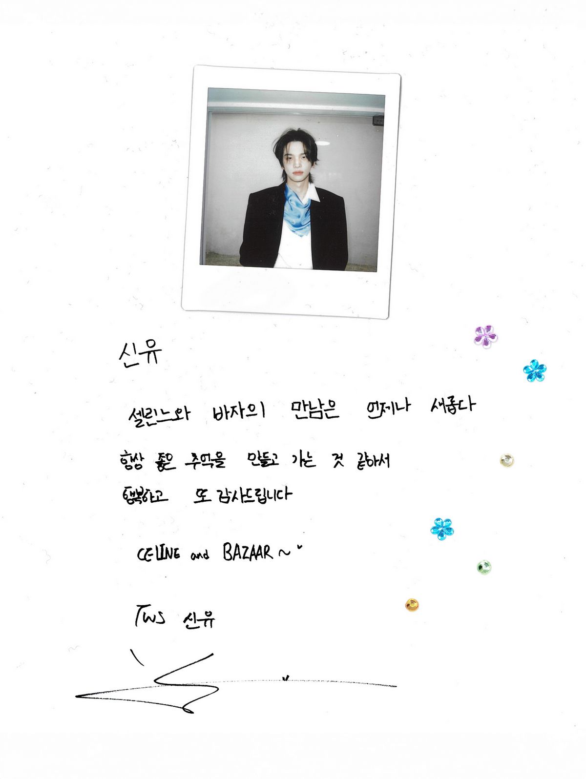 바자 4월호 디지털 커버는 셀린느와 TWS가 장식했다. 신유, 도훈, 영재, 한진, 지훈, 경민은 바자와 함께한 화보 현장에서 특별한 폴라로이드 사진을 남기고, 촬영을 마친 소감을 전했다. 오직 바자 웹사이트에서만 공개되는 익스클루시브 사진과 멤버들의 손편지는 아래에서 확인해 볼 것.