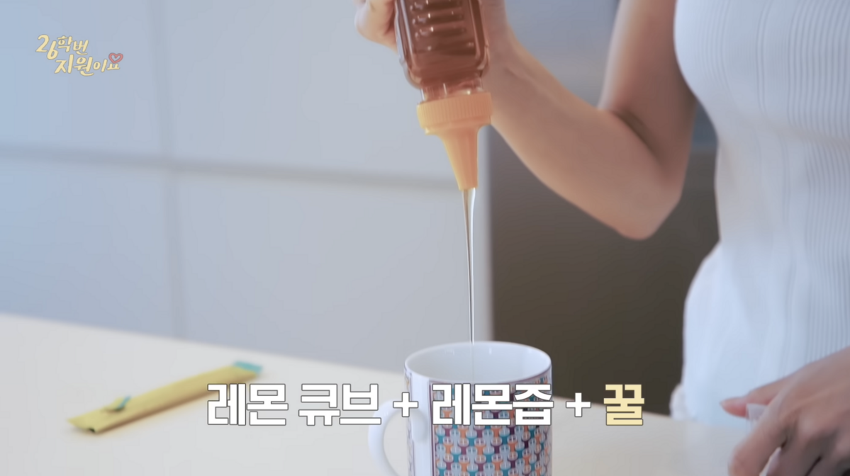 하지원의 아침은 냉장고 냉동 칸을 열며 시작된다. 문을 열자마자 가득 채운 레몬 큐브가 보이는데! 본인 스스로 ‘레몬에 미친 사람’이라 부를 정도로 레몬 사랑이 남다른 그녀의 첫 모닝 루틴은 바로 15년째 마셔온 레몬꿀 티. 얼려둔 레몬 큐브에 레몬즙까지 듬뿍 넣은 다음, 자연산 좋은 꿀을 크게 떠 넣고 물을 부어주면 끝.