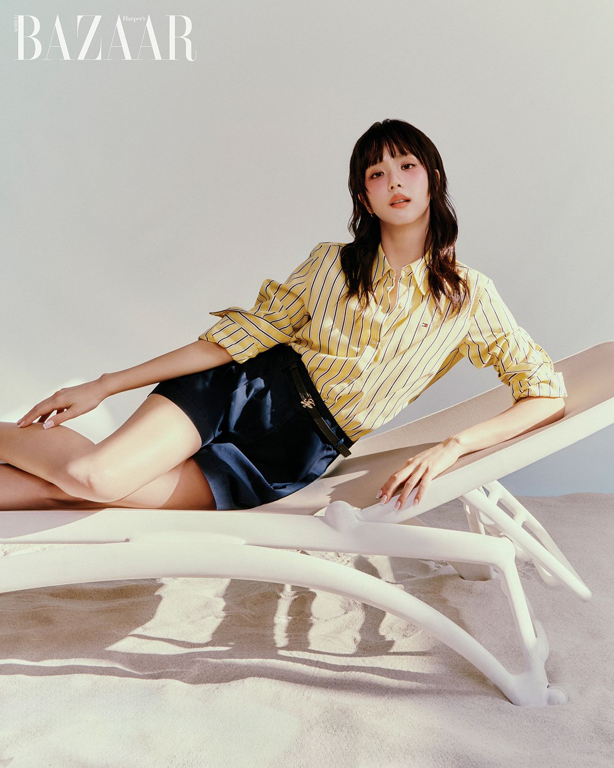 하퍼스 바자 오늘 촬영 또한 일상에서 즐길 수 있는 타미 힐피거의 룩을 착용했어요.