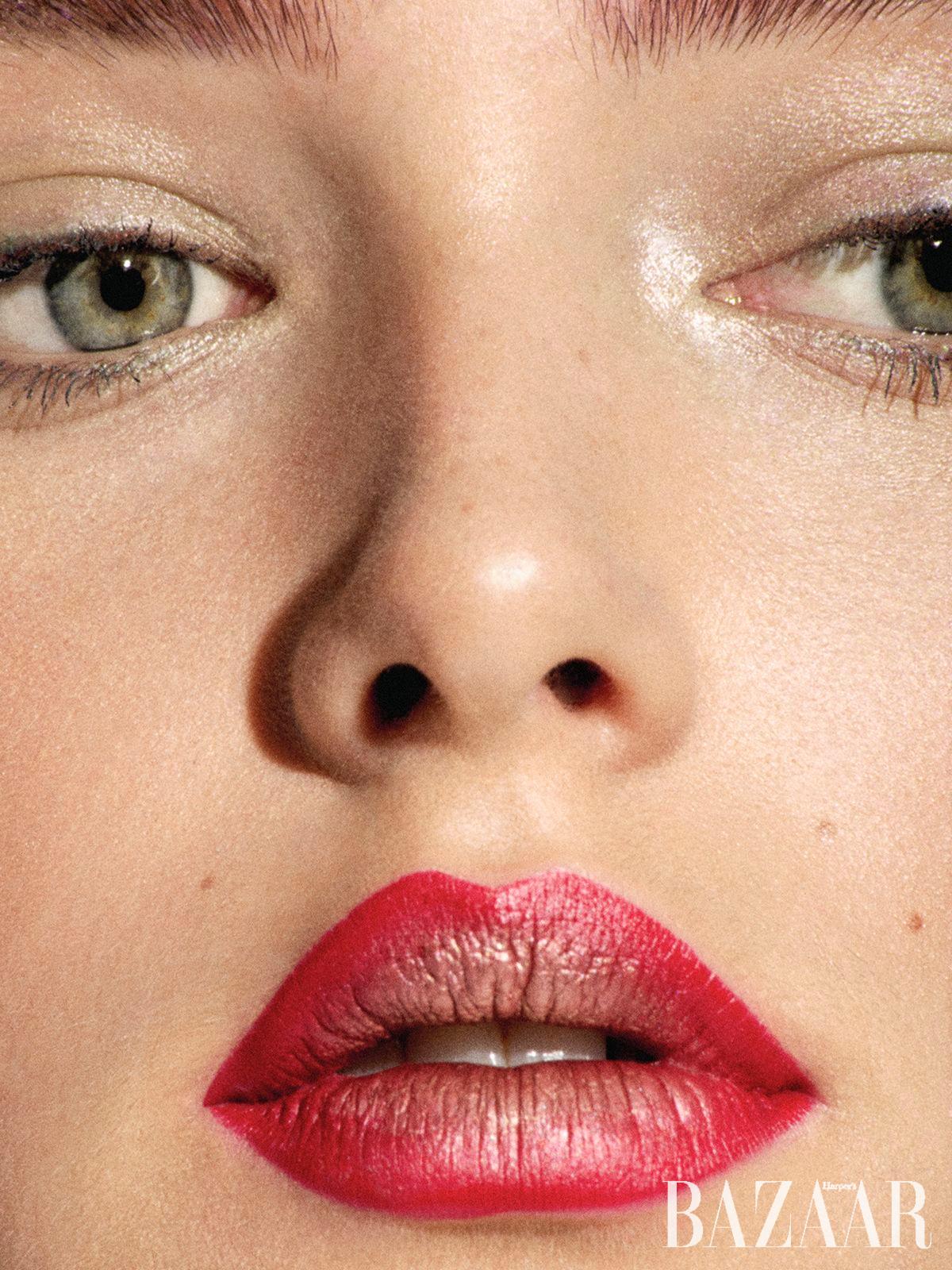 번진 듯한 블러드 립이 2026 S/S를 대표하는 방식이지만, 새틴 질감의 레드 립 역시 여전히 강력한 포인트로 활용된다.