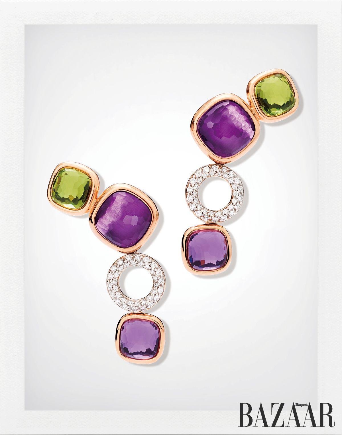 페리도트, 애미시스트, 다이아몬드를 장식한 ‘누도’ 이어링은 Pomellato.