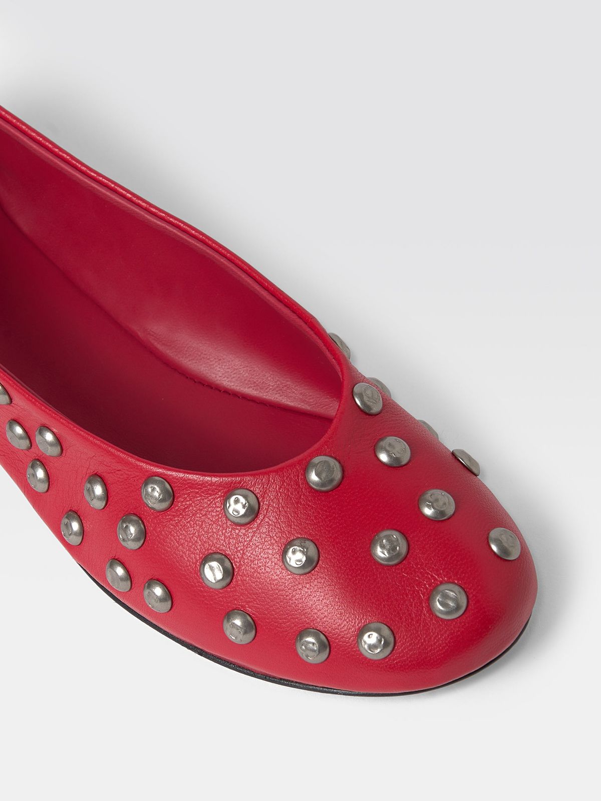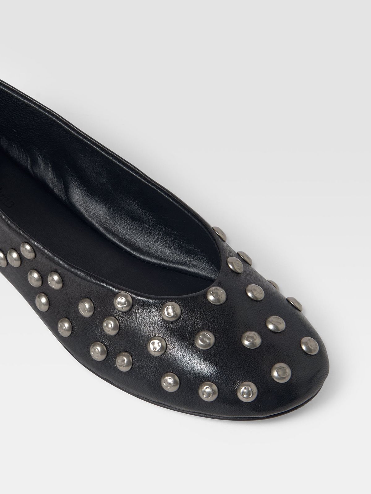 기마구아스를 떠올리면 자연스럽게 연상되는 플랫 슈즈. 베이직한 디자인 위에 스터드를 더해 하나만으로도 포인트가 되는 아이템. 데님, 스커트 어디에나 자연스럽게 매치된다.