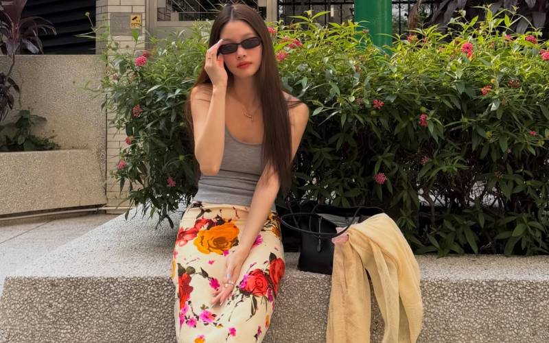 여름 휴양지 무드를 가장 직관적으로 담아내는 플라워 프린팅. 미디 기장새틴이나 실크처럼 유연하게 흐르는 소재를 선택하면 걸을 때마다 자연스럽게 움직이는 실루엣이 만들어지며, 한층 여리여리한 분위기가 강조된다.