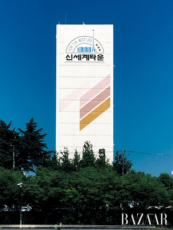 출근길에 항상 지나치는 경북아파트 벽은 디자이너인 내게는 의미보다는 형태로 각인되었다. 경북아파트라는 이름에서는 행정구역 이상의 의미를 찾을 수 없다. 경북의 대표성을 강조한 듯 보이지만 특별함은 전혀 없는 이름이다. 그래서일까, 글자 레터링에 상당히 신경을 썼다. 사각형 벽면을 초록색 테두리로 장식한 다음, 글자는 사각형에 꽉 차도록 두껍고 단단하게 그렸다. 획의 일부분을 곡선으로 돌린 것도 획의 연결을 자연스럽게 만들어준다. 글자는 멀리서도 잘 보이도록 입체로 그렸다. 요즘이야 페인트 칠보다는 입체 조형물로서 심벌과 글자를 건물 외벽에 붙이지만, 당시로서는 재료의 한계에 맞선 시도로 볼 수도 있다. 이렇게 1982년도에 그려진 글자 레터링의 솜씨를 지금 볼 수 있는 경우는 아파트 외벽 말고는 드물다.