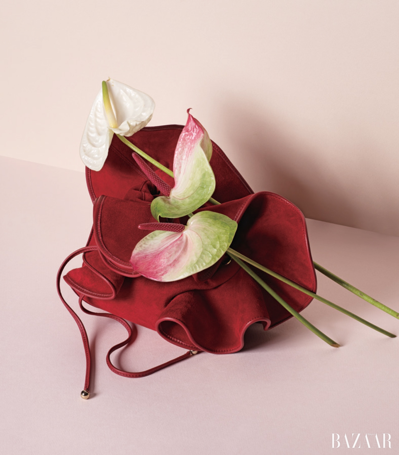붉게 물든 꽃잎이 연상되는 버킷 백은 2백만원대로 Nina Ricci by BOONTHESHOP