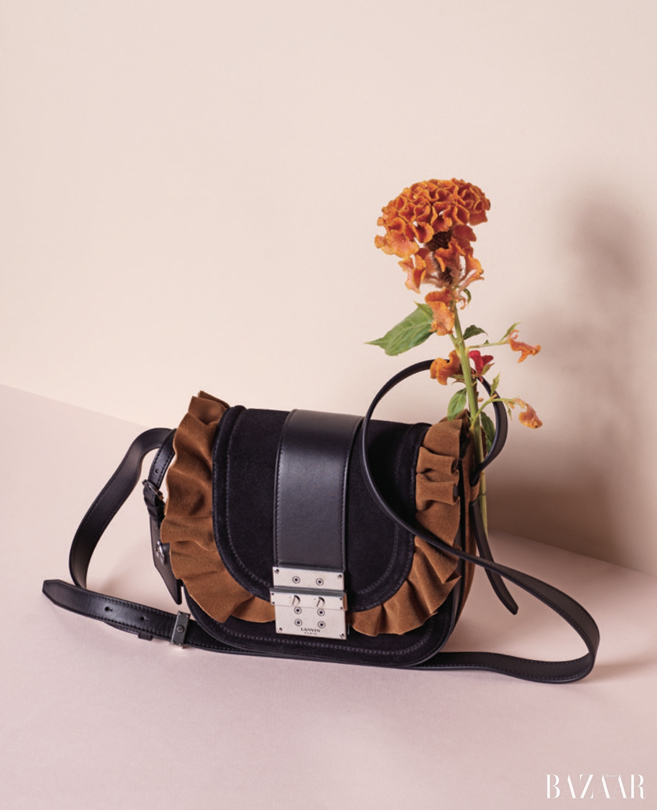 스웨이드 소재의 러플 장식 스트랩 백은 2백79만원으로 Lanvin 제품