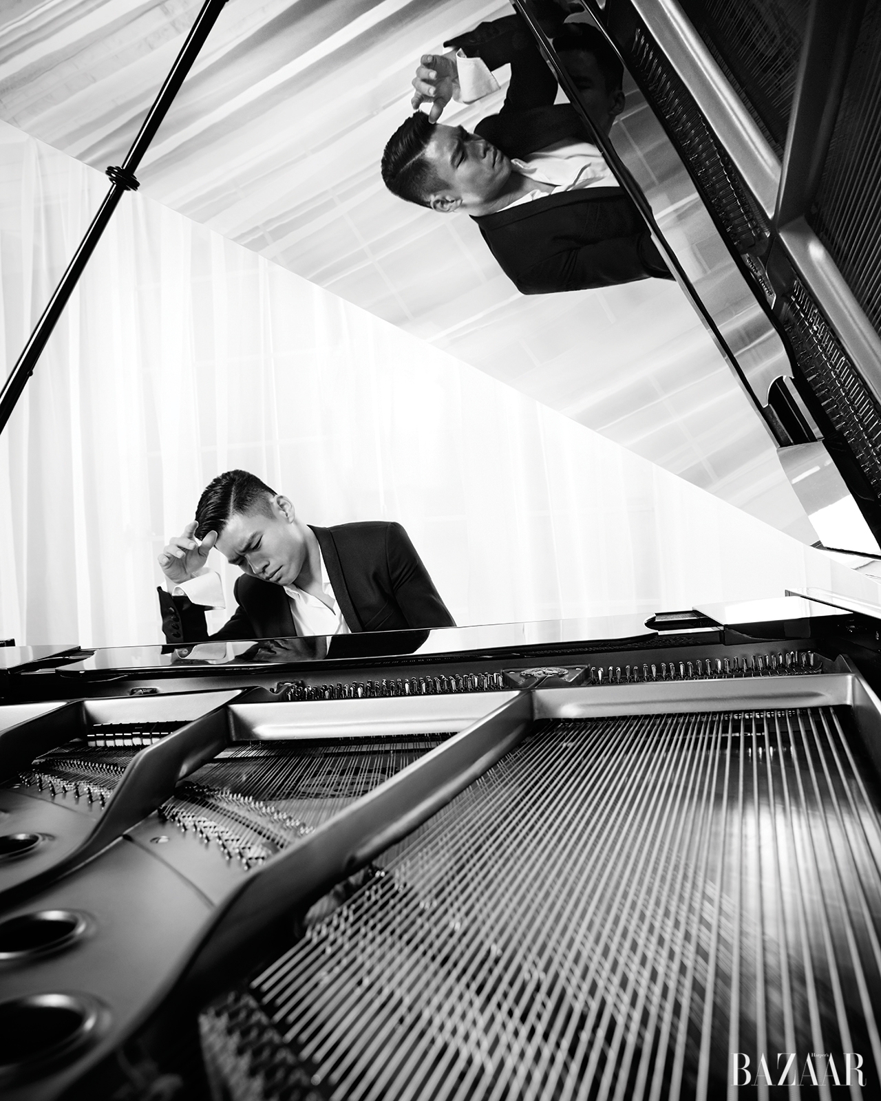 그랜드피아노 앞에 앉은 지용이 커튼 사이로 들어오는 빛을 받으며 슈만의 ‘헌정’을 연주하기 시작했다. 1840년 슈만이 아내 클라라에게 헌정하기 위해 작곡한 곡이다. 스위치라도 켠 듯 순식간에 음악에 몰입한 그는 애절한 표정을 지은 채 아름다운 선율로 공간을 채워나갔다. 클래식 공연장에서나 볼 수 있을 법한 이 광경은 다름 아닌 촬영장에서 벌어진 일. 보통 촬영장에서 박수 소리가 나는 순간은 촬영을 모두 마친 후 “수고하셨습니다!”라는 인사와 함께 해산할 때뿐이지만 이날 촬영에선 지용의 연주가 끝날 때마다 모든 스태프들이 환호와 박수를 보냈다. ‘연주하는 척’을 해줄 수 있냐는 요청에, “I want to play for real.”(아홉 살 때 미국으로 이민을 간 지용은 영어를 사용한다.)이라고 답한 지용은 촬영 내내 ‘헌정’을 비롯해 바흐의 코랄 프렐류드 중 ‘깨어나라, 부르는 소리 있어’와 쇼팽의 ‘안단테 스피아나토와 화려한 대 폴로네이즈 Op. 22’까지 유려하면서도 강렬한 연주를 계속해나갔다.