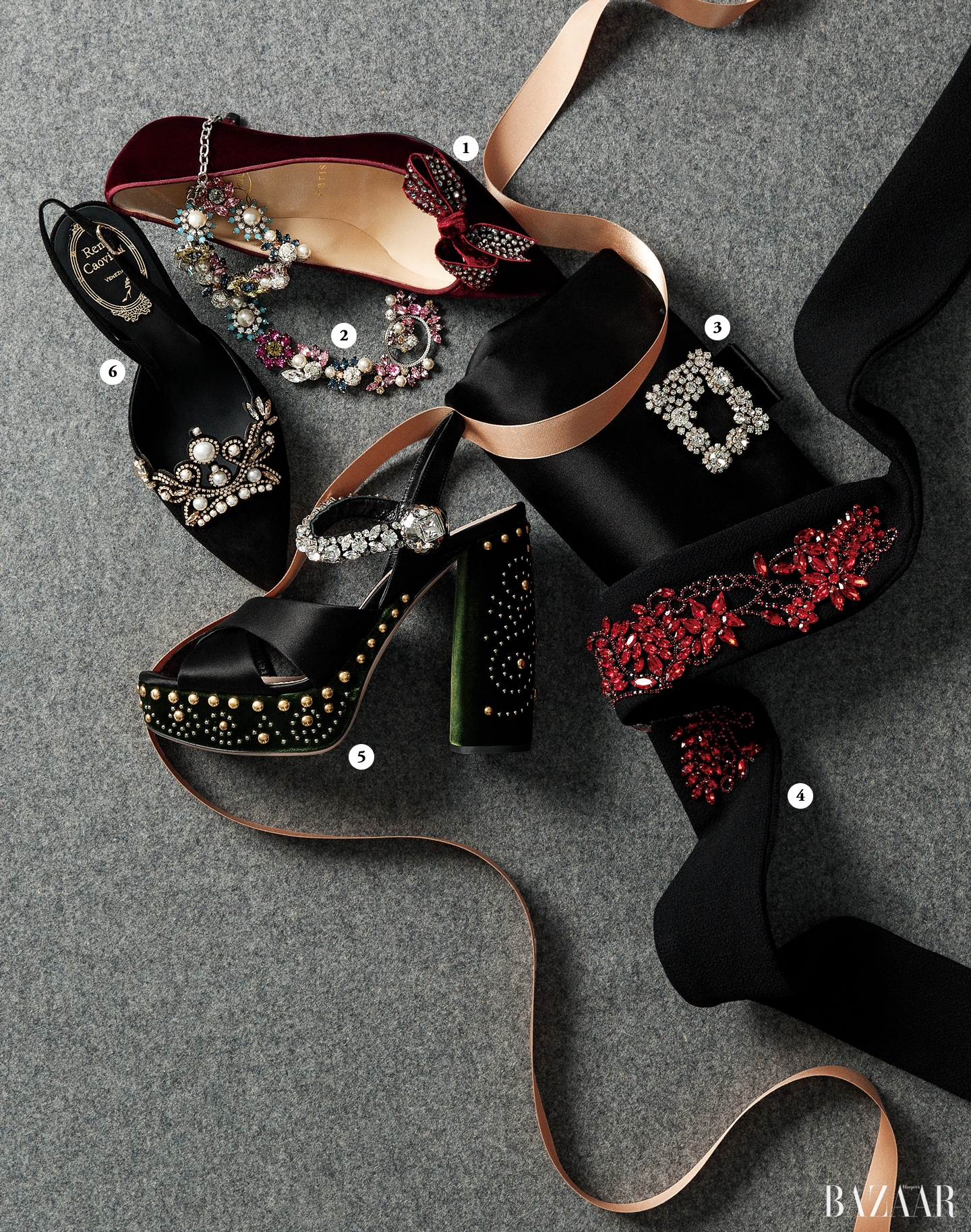 1. 크리스털 리본 장식의 스웨이드 슈즈는 1백49만원으로 Christian Louboutin