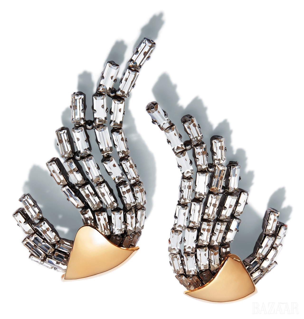 조형적인 아름다움이 돋보이는 크리스털 귀고리는 가격 미정으로 Saint Laurent