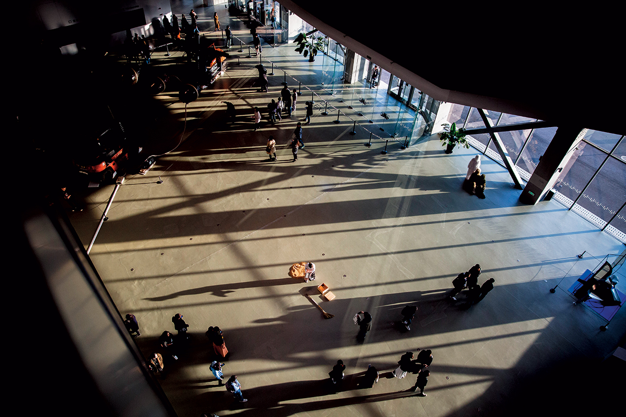 하루에 한 작품씩만 감상해도 배가 부를 것 같은 미술품들을 실컷 즐겼지만, (믿기지 않게도) 이번 상하이 방문의 계기가 된 두 개의 메인 디시는 여전히 남아 있었다. 유서 깊은 상하이 비엔날레, 그리고 히말라야 미술관의 상하이 프로젝트 ‘Envision 2116’이 그것이다. (11월 11일에 시작된 제11회 상하이 비엔날레는 3월 12일까지 계속되고, 장기 프로젝트인 상하이 프로젝트 ‘Envision 2116’은 올해 7월 30일까지 다양한 프로젝트들을 펼쳐보일 예정이다.) 상하이 비엔날레가 열리고 있는 파워 스테이션(Power Station of Art)은 과거 발전소였던 건물로, 네 개의 대형 굴뚝까지 고스란히 남아 있는 포스 넘치는 건축물이다. 출입구를 찾아 헤매는 길에 기이하고 희미한 노랫소리를 따라가보니, 미술관 밖에 설치된 정 보(Zheng Bo)의 작품 ‘그녀를 위해 노래하다(Sing for Her)’에서 흘러나오는 소리였다. 거대한 메가폰 형태의 이 작품은 상하이에 있는 외국인 노동자들의 노래를 들려주기 위해 만들어졌다. 파워 스테이션 안에 들어서니, 최면에 걸린 듯이 우아한 동작으로 바닥에 흩뿌린 쌀을 빗자루로 쓸고 있는 퍼포먼스 아티스트 리 밍웨이(Lee Mingwei)가 있다. 그녀의 옆을 스쳐 리우 웨이의 작품들이 전시되어 있는 계단을 따라 올라가면 황량한 달 표면 같기도 하고 추락한 우주선처럼 보이기도 하는 거대한 설치 작품 ‘존재의 거대한 연쇄-혹성 삼부작(The Great Chain of Being-Planet Trilogy)’을 맞닥뜨리게 된다. 그 앞에는 마치 테마파크에 온 것처럼 많은 사람들이 작품 앞에 줄 서서 입장을 기다리고 있다. 중국의 선구적인 연극감독인 모우는 새로운 행성을 탐험하는 것 같기도 하고 놀이 기구에 탑승한 것 같기도 한 이 작품 안에 1960년대 중국의 집단 노동, 리처드 닉슨 대통령의 베트남전 종식 선언, 문화혁명 당시의 방송들을 틀어두었다. 이외에도 섬세하게 움직이는 진동추, 오로지 빛만 존재하는 방, 고인 물에 달의 형상을 띄운 작품들은 서로 유기적으로 연결되며 SF 영화 속에 들어온 것 같은 경험을 선사했다. 실제로 올해 상하이 비엔날레는 리우 시신(Liu Cixin)의 SF 소설 에서 영감을 받았다고 한다. 상하이 비엔날레를 큐레이션한 델리 기반의 아티스트·큐레이터 그룹 락스 미디어 컬렉티브(Raqs Media Collective)는 이렇게 말했다. “이 책을 읽고 오랜만에 흥분을 느꼈어요. 인간의 생명을 구하는 것은 무엇인가에 대한 질문을 던지는 책이에요. 지금과 같은, 예측하기 어려운 절망의 시대에 굉장히 중요한 질문이라고 생각했어요. 더욱 놀라운 것은 이 책이 해답도 제시해주고 있다는 것이에요. 이번 상하이 비엔날레 또한 질문인 동시에 해답이기도 해요. 우리의 미래는 어떨지, 우리의 힘이 모이고 흩어지면 어떤 일이 일어나는지에 대해서 말이죠.”