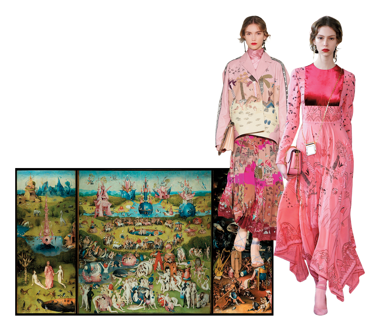 첫 홀로서기를 시작한 발렌티노의 피에르파올로 피치올리. 화사한 핑크빛으로 물든 이번 시즌 발렌티노 쇼는 그 어느 때보다 우아하고 고상했다. 특히 천당과 지옥의 판타지를 진보적으로 표현한 네덜란드 화가 히에로니뮈스 보슈의 '쾌락의 정원’을 현대적인 패턴으로 재해석한 디자이너 잔드라 로즈의 손길이 더해져 더욱 풍성한 쇼를 완성했다.
