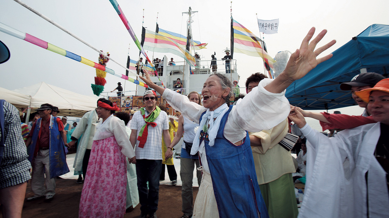 어두워져가는 하늘을 배경으로 끈 풀린 갓 하나가 비행선처럼 떠다닌다. 박찬경 작가의 2011년 작품인 ‘파란만장 Night Fishing’의 한 장면이다. 그가 2014년 만든 영화 <만신>에서는 청명한 하늘을 배경으로 무당이 굿을 할 때 쓰는 빨간 고깔이 그 역할을 떠맡고 있다. 두 작품 모두 어딘가 기이한 느낌이 든다. 갓과 고깔이 주는 생경함이 일차적 이유일 것이다. 이 두 대상은 근대의 풍경에서 지워졌거나 지워져가는 존재들이니까. 다음은 왜 하필 하늘을 날고 있을까 하는 점이다. 하늘에 있다는 것은 무언가를 내려다보는 위치에 있다는 말이다. 의문은 이렇게 옮겨간다. 그럼 갓과 고깔은 무엇을 내려다보고 있는 것일까?
