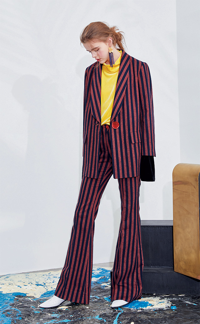 중성적인 아름다움을 지향하는 제인송 컬렉션에는 이번 시즌에도 어김없이 시크한 매니시 수트와 소녀풍의 섬세한 시폰 드레스 룩이 공존했다. 컬렉션의 시작을 알린 수트 라인은 이번 시즌을 대표하는 키 룩. 블루, 버건디, 베이지로 연결되는 매니시한 컬러 수트 룩은 클래식하면서도 임팩트 있는 스타일을 완성했다. 더불어 하트, 로봇과 같은 키치한 패턴과 여성스러운 시스루 드레스, 벌키한 메탈릭 스웨터 등이 만나 디자이너 송자인이 말하고자 하는 정제된 ‘스트리트 스피릿’이 완성되었다.
