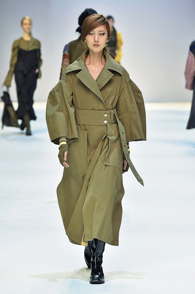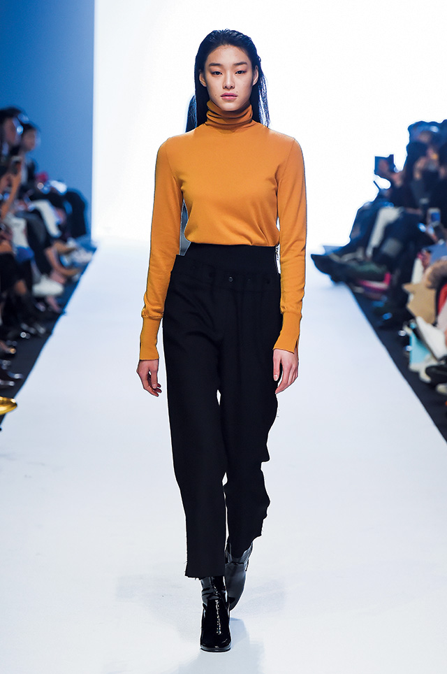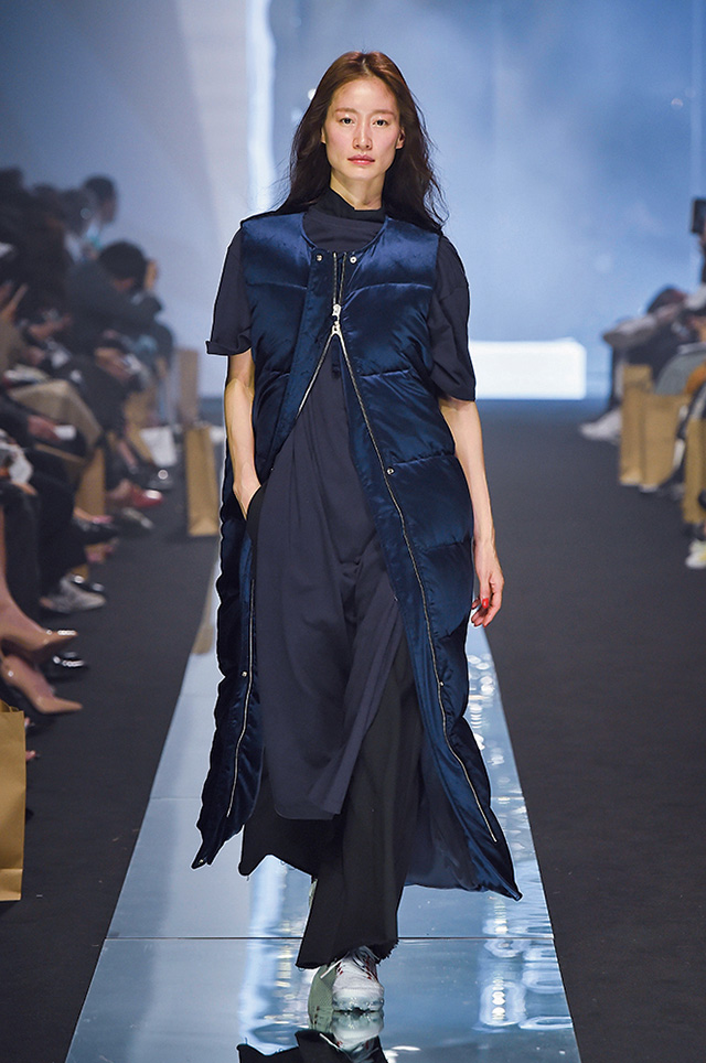 30주년을 맞이해 브랜드의 오리지낼러티를 되돌아본 데무 박춘무 컬렉션. 케이프나 오버사이즈의 셔츠 드레스 등 브랜드의 30년을 이끈 아이템을 담백하게 풀어냈다. 여기에 옐로, 블루, 레드 등의 컬러를 가미해 디자이너가 한동안 몰입했던 아방가르드한 분위기를 덜어냈다. 한동안 볼 수 없었던 남성복의 등장이 반가웠던 쇼!