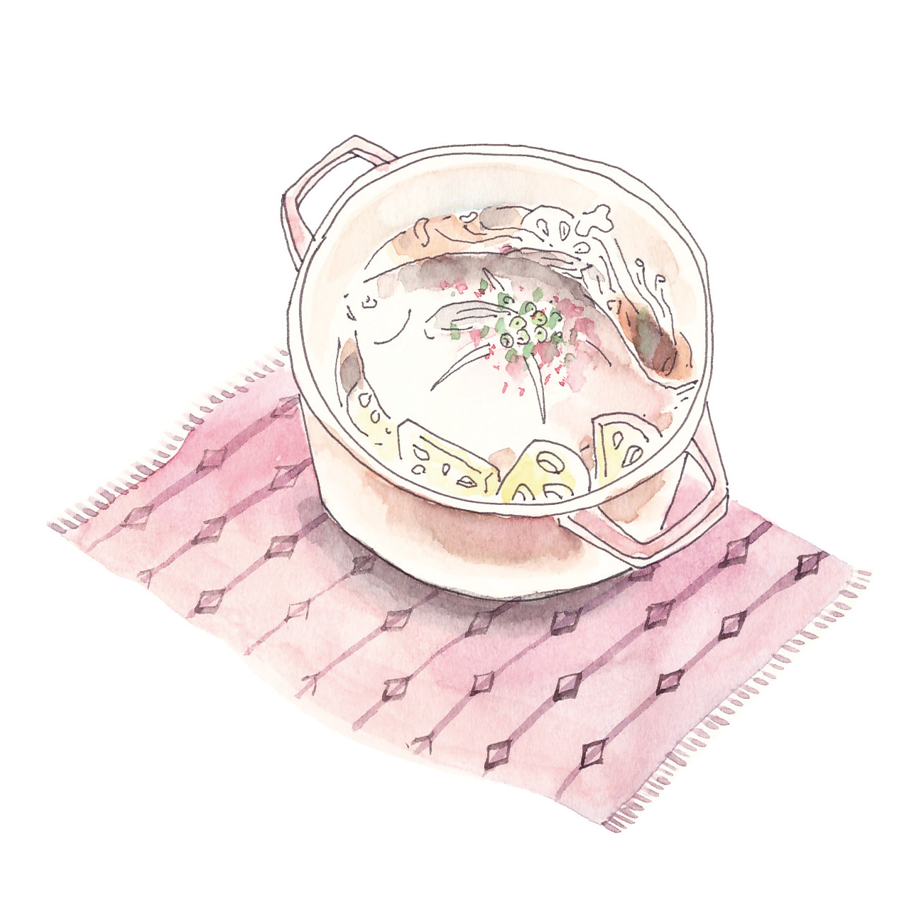 버터처럼 살점이 연하고 부드러운 병어. 꼬리의 쫄깃한 살점, 등지느러미가 붙은 쪽의 담백한 살점, 기름진 뱃살은 회로 즐기고, 남은 서덜로는 조림을 한다. 제철 햇감자를 듬성듬성 깔고 양파며 마늘 다진 것과 향 좋은 고춧가루에 간장 뿌려서. 하얗고 부드러우며 ‘꼬순’ 병어가 입에서 녹아난다.