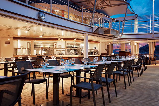 실버 뮤즈 호에는 8개의 훌륭한 선상 레스토랑이 자리 잡고 있다. ‘인도 차이나’ 레스토랑에서는 아시안 퓨전 음식을, ‘레지나 마르게리타’에서는 피자를, ‘핫 록스’에서는 직접 그릴에 구워 먹는 스테이크를 맛볼 수 있다. ‘라 데임’에서는 최상급의 프랑스 요리를 맛볼 수 있는데, 바다 위에서는 유일하게 를레 앤 샤토 레스토랑으로 인정 받은 곳이기도 하다. 지중해 크루즈 코스를 선택하면 7박 동안 바다 위를 떠 다니며 맛있는 음식을 즐길 수 있다. www.silversea.com