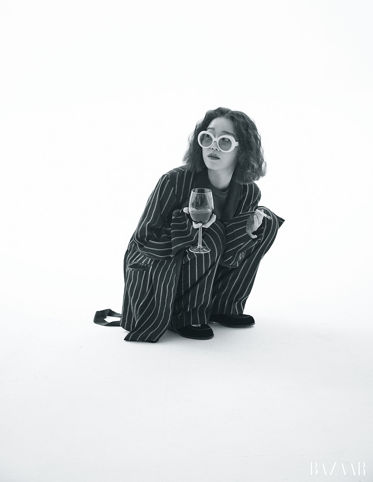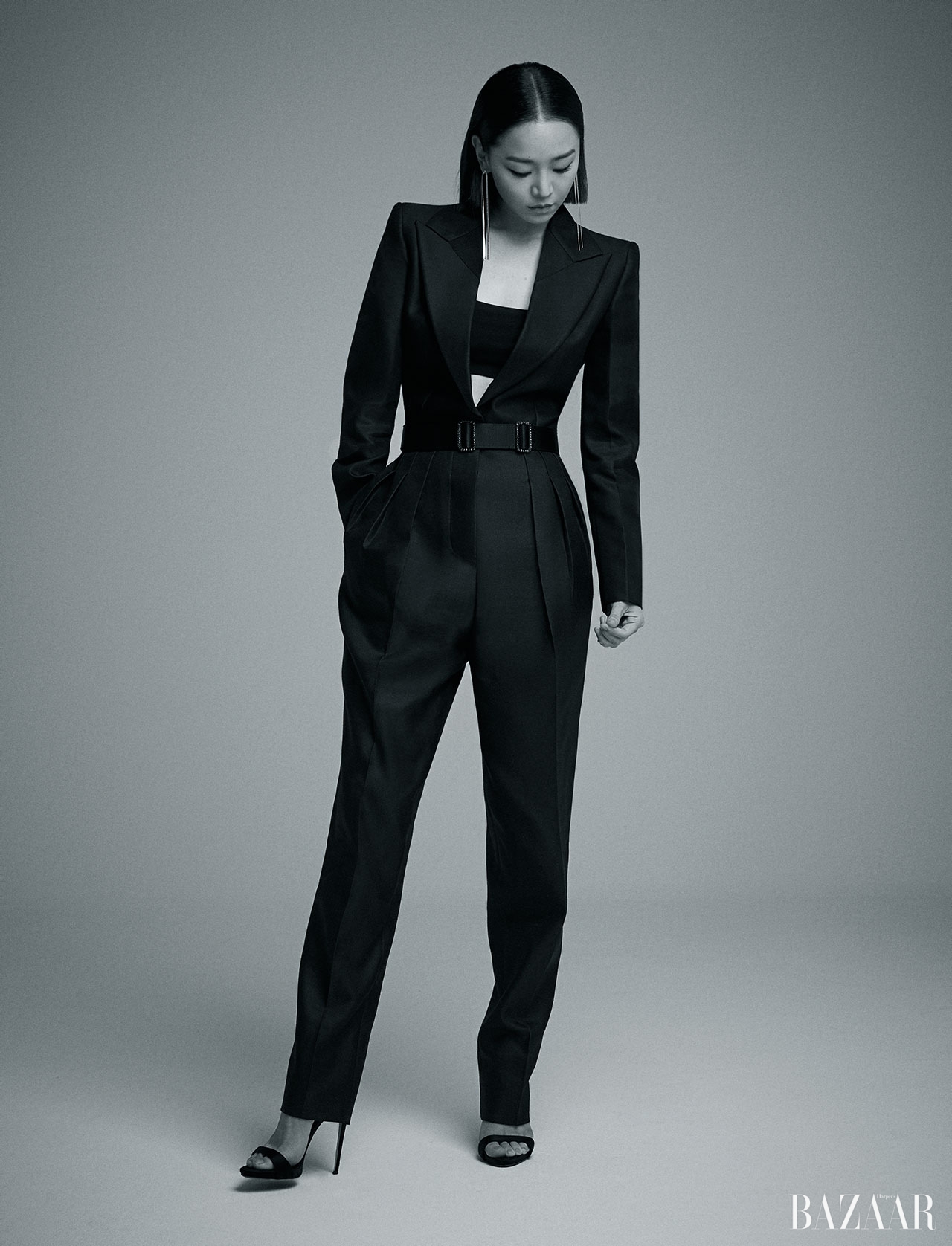 아, 이런, 같은 옷 같아 보이지만 매번 미묘하게 달랐는데!(웃음) 그래서 스타일리스트 실장님이 속상하셨을 거예요. 투 버튼, 스리 버튼, 더블 버튼, 넉넉한 피트, 슬림한 피트.... 굉장히 열심히 준비해주셨거든요. 은수는 지금 아버지의 누명을 벗게 하겠다는 일생일대의 목표 말고는 다른 걸 신경 쓸 여유가 없는 상태라서 자신의 외모에 관심이 없을 거예요. 이 아이가 옷을 입을 때 가장 중요하게 생각하는 건 일하기 편한 차림 그것뿐이죠. 그래서 타이트한 옷은 피했고 머리도 중간에 잠깐 풀긴 하지만 깔끔하게 묶었어요. 실제로 검사를 많이 만나본 건 아니지만 주변 사람들에게 물어보니 대부분 은수와 비슷한 차림이긴 하더라고요. 검사로서의 중후함, 공정성 같은 걸 표현하기에도 검은 정장이 제격인 것 같고요.