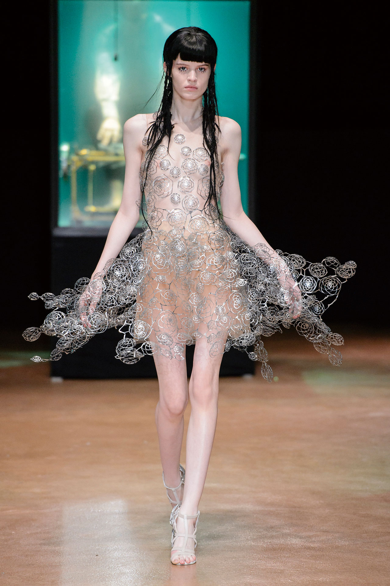 올해는 아이리스 반 헤르펜이 탄생 10주년을 맞는 해로 그녀는 불빛 한 점 없는(스마트폰의 불빛조차 허락되지 않은!) 암흑 속에서 쇼를 시작했다. 신비로운 음악 소리와 함께 네 개의 커다란 수조가 보이기 시작했고 그 속에서 각기 다른 악기를 연주하는 덴마크의 수중 음악 그룹 비트윈 뮤직(Between Music)의 모습은 그 자체로 시선을 압도하기에 충분했다. 이윽고 등장한 룩은 물과 공기, 유동성을 테마로 한 의상들로 그녀의 장기인 3D 프린팅 과정으로 탄생한 물결무늬의 실버 드레스, 물방울을 연상케 하는 플라워 모티프의 입체적인 드레스 등 무척이나 혁신적이고 아름다운 피스였으며 쿠튀르의 판타지를 고스란히 담고 있었다.