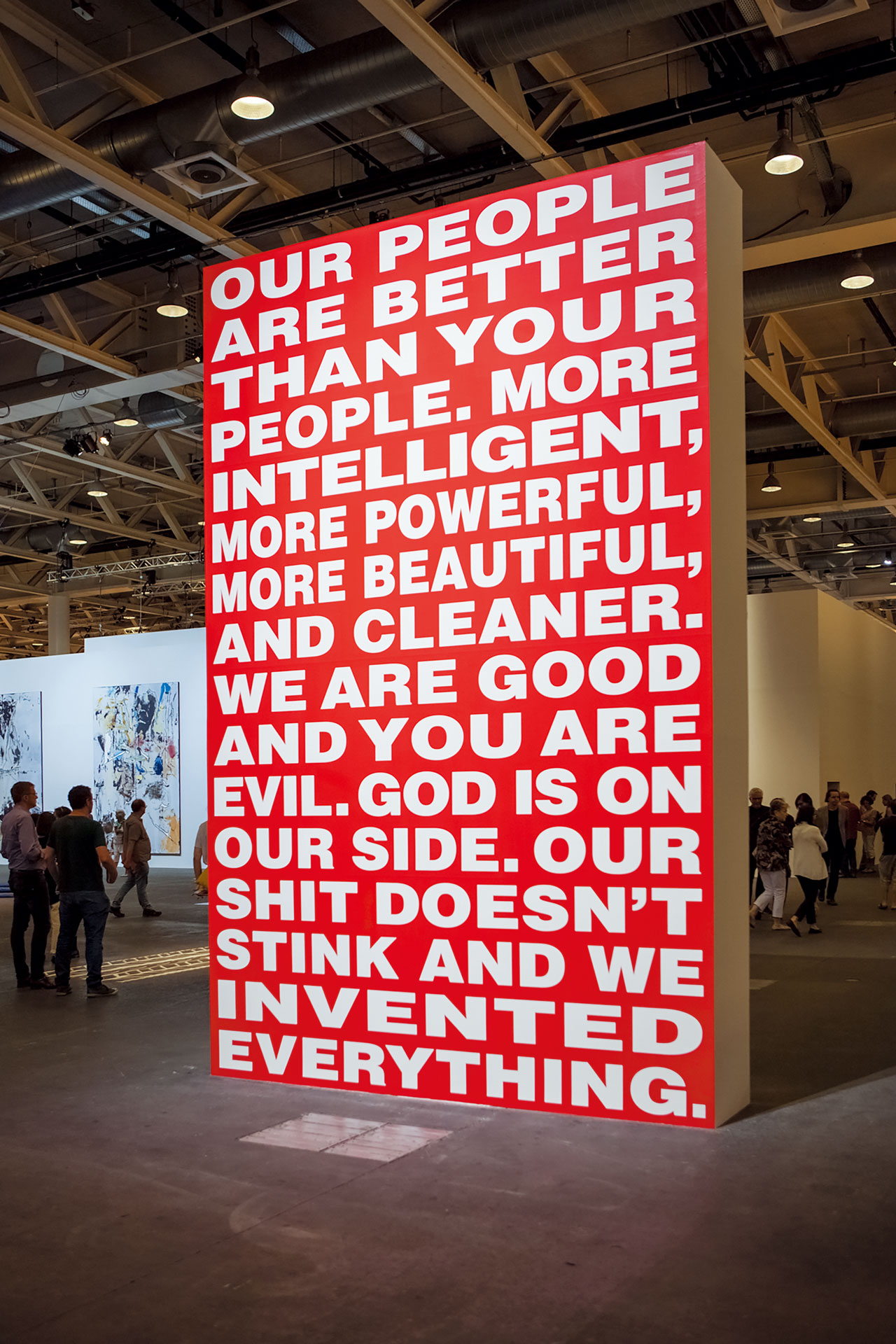 아트바젤이 열리고 있는 컨벤션 센터, 메세 바젤에 하루 정도 머문다면 각종 ‘게이트’에서 가방 검사를 백 번쯤 받게 된다.(VIP 오프닝 기간에는 어떤지 모르겠다.) 조금 번거롭긴 하지만 테러의 시대에 이해하지 못할 일은 아니다. 아트바젤의 하이라이트 전시 <언리미티드(Unlimited)>가 열리고 있는 전시장까지 가기 위해서는 가방을 딱 서너 번쯤만 보여 주면 된다. 아트바젤이 판매를 위한 작품을 고전적인 방식으로 진열 한다면, 언리미티드는 아트바젤에 참여한 주요 갤러리가 추천한 작가들의 대형 작품을 전시의 형태로 선보인다. 대형 설치 작품, 퍼포먼스, 미디어 아트 등 쉽게 사고 팔 수 없는, 그러나 흥미를 가질 수 밖에 없는 현대미술 작품들이 언리미티드 섹션에 모여 있다.