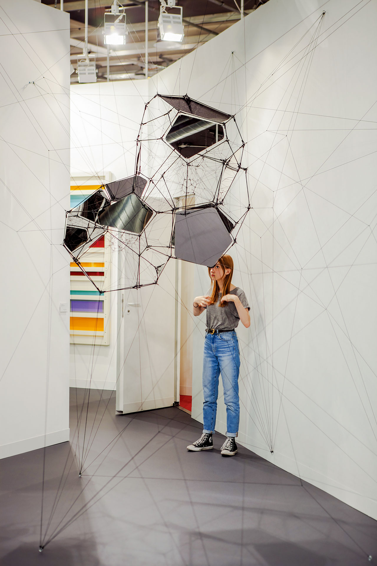 이외에도 언리미티드 전시장에는 각기 다른 태도로 각기 다른 이야기를 건네는 작품들이 무수히 많지만, 이제는 믿을 수 없이 거대하고 엄청나게 복잡한 아트바젤 페어장에 입성해야 할 때다. 마지막으로 언리미티드에 전시된 박찬경 작가의 비디오 작품 ‘시민의 숲’을 감상한 뒤에 우선 국제 갤러리 부스로 향했다. 올해 국제갤러리는 양혜규의 신작 ‘얀스트라세 5(Jahnstrasse 5)’ 시리즈와 ‘땡땡이’의 작가 김용익의 초기작, 박서보, 이우환, 김환기, 알렉산더 칼더의 작품 등으로 부스를 꾸몄다. 아트바젤에 참여한 또 하나의 한국 갤러리 PKM 갤러리 부스에서는 자개를 이용한 이불 작가의 신작과 더불어 전광영, 올라퍼 엘리아슨 등의 작품과 만날 수 있었다.