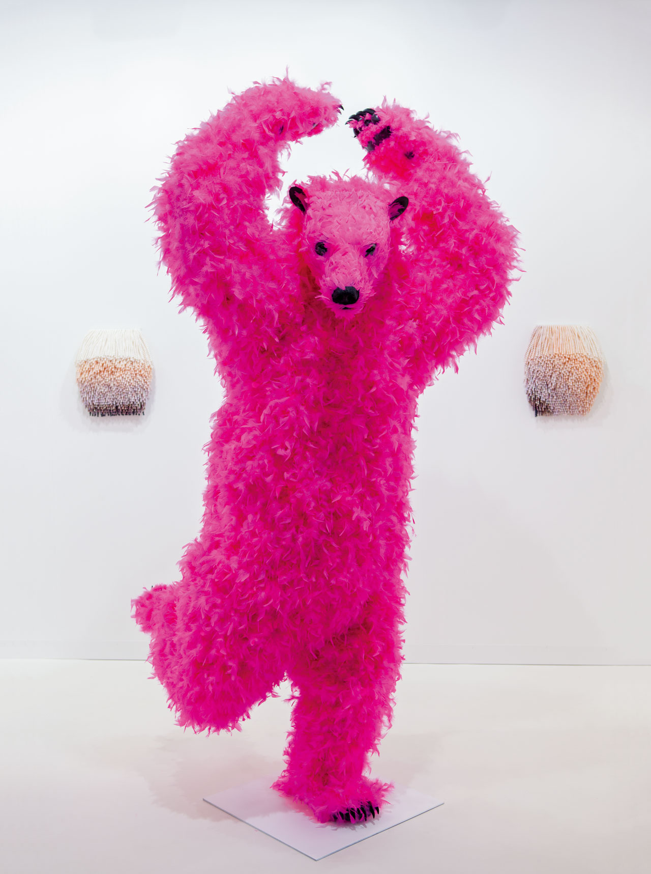 이곳에서 가장 ‘아트바젤’ 다운 위풍당당한 포스로 관객을 맞이하는 작품은 존 발데사리의 ‘Ear Sofa and Nose Sconce’였다. 금발머리 여인과 그녀의 강아지가 우아하게 앉아 있다. 소파는 커다란 귀이고 벽에는 뒤집힌 코의 형상이 있다. 발데사리가 가진 얼굴에 대한 환상 같기도 하고 살바도르 달리의 몽환적인 시공간 같기도 한 이 작품의 일부가 된 강아지의 이름은 ‘골리앗’이며, 이 강아지가 다른 일정을 소화하는 동안에는 다른 강아지가 ‘교대’해준다고 한다.